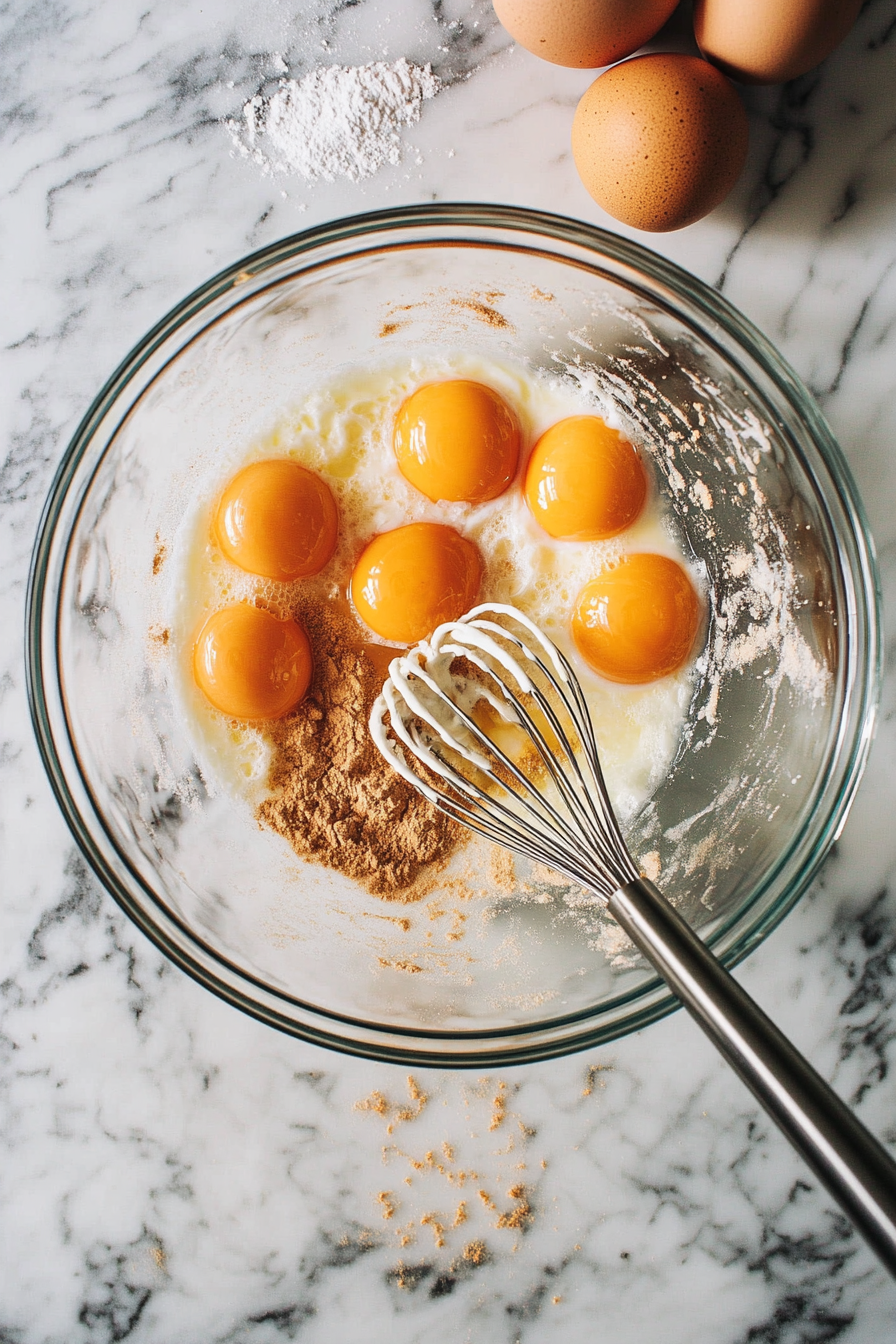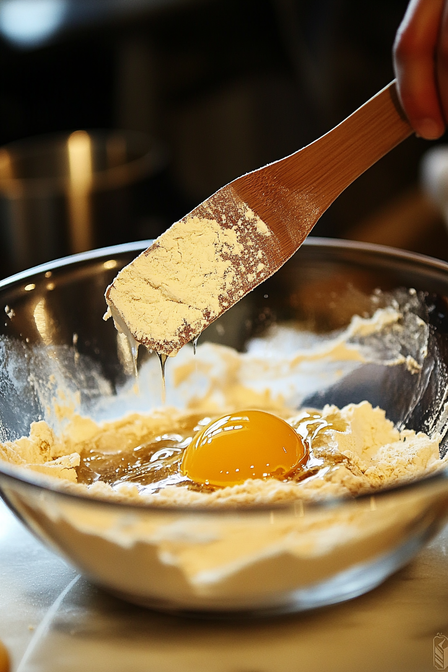 Fold the dry ingredients into the wet ingredients until no dry flour remains. Don’t overmix.