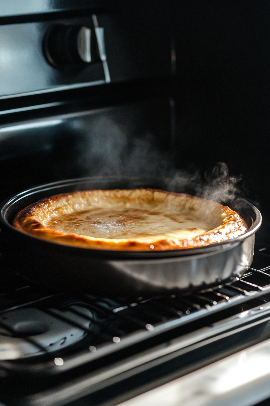 Set Up Water Bath: Boil water and place the springform pan inside a 10-inch pan, then both inside a roasting pan.