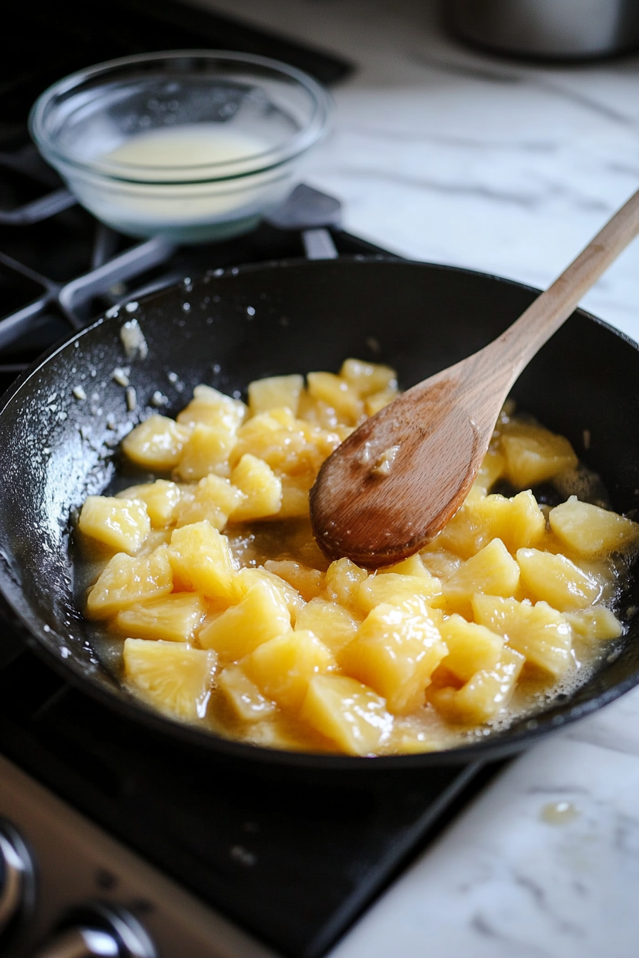 Make Pineapple Filling: Cook pineapple, brown sugar, and juice until syrupy, then thicken with cornstarch slurry. Cool completely.
