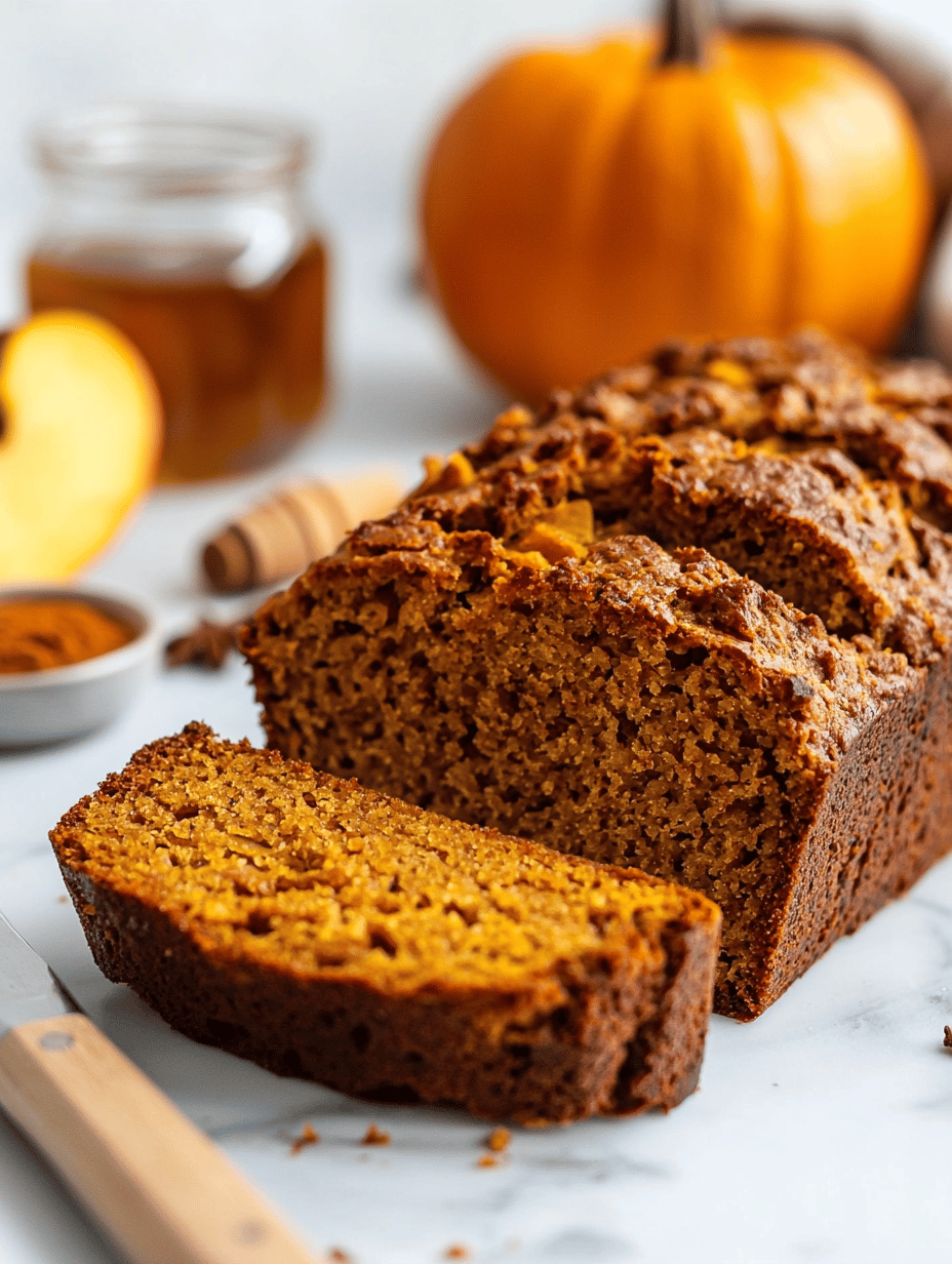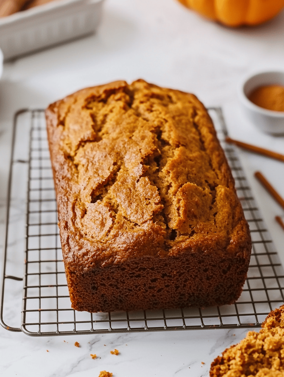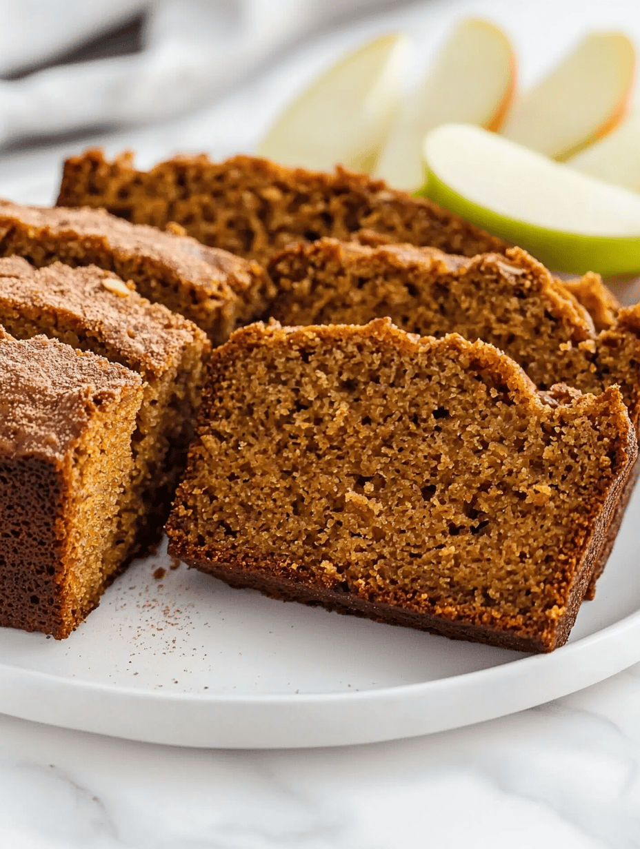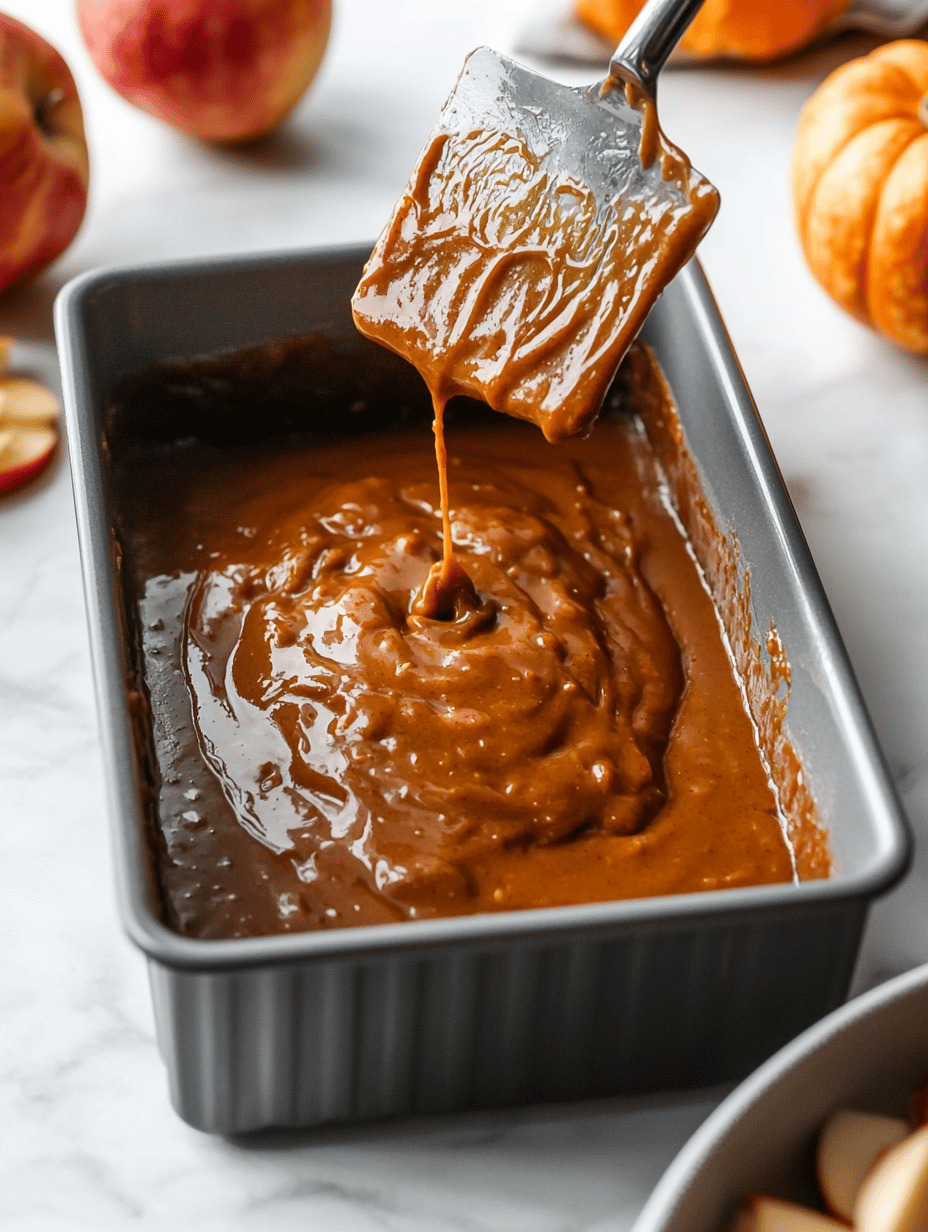 This pumpkin apple bread is a moist loaf featuring blended pumpkin and warm spices, with an added layer of sautéed apples that provide a sweet, tender interior. The batter is mixed until just combined, then baked to golden perfection, resulting in a tender crumb with a slightly crackled crust accented by caramelized apple bits.