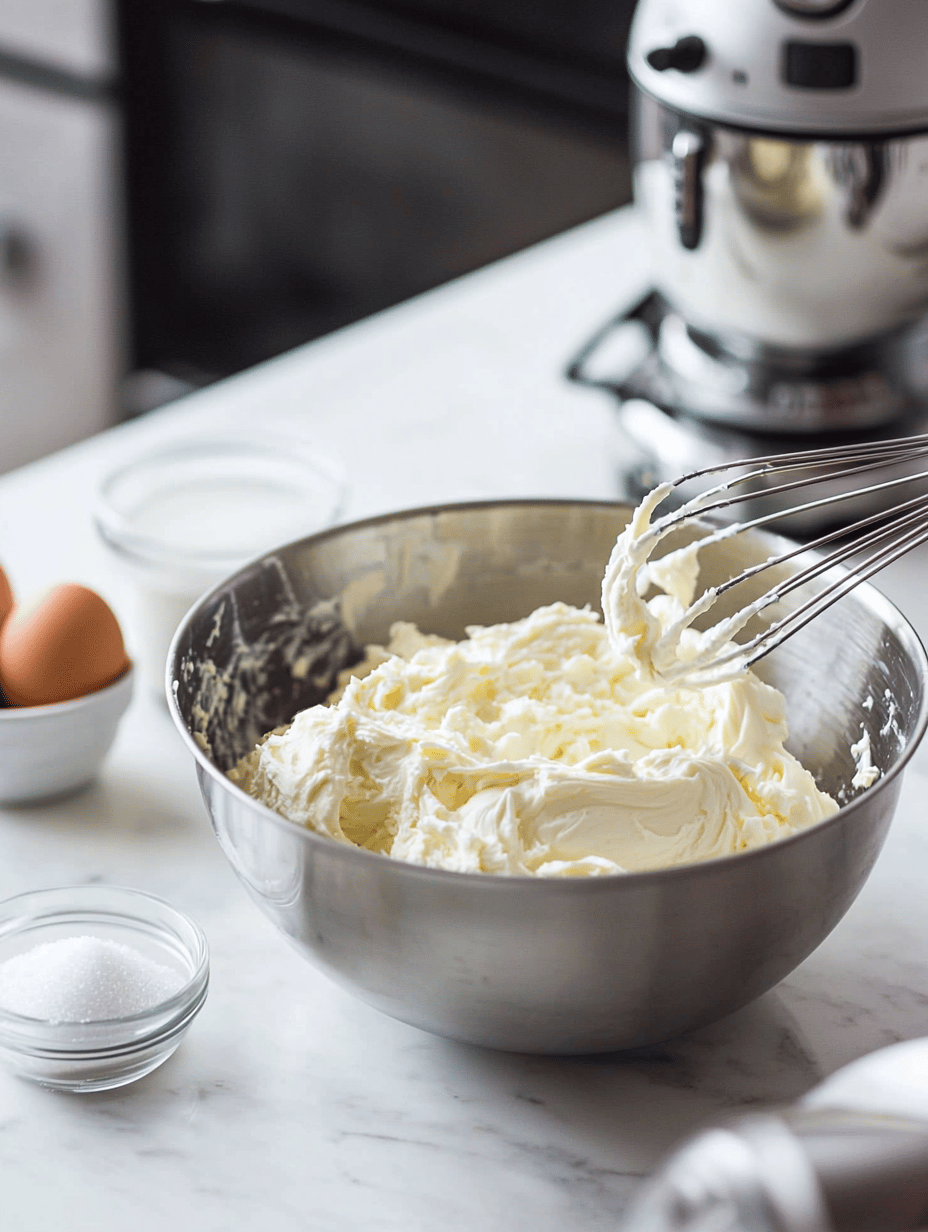 Preheat your oven to 325°F (160°C). In a large mixing bowl, beat the softened cream cheese with an electric mixer until smooth and fluffy, about 2-3 minutes.
