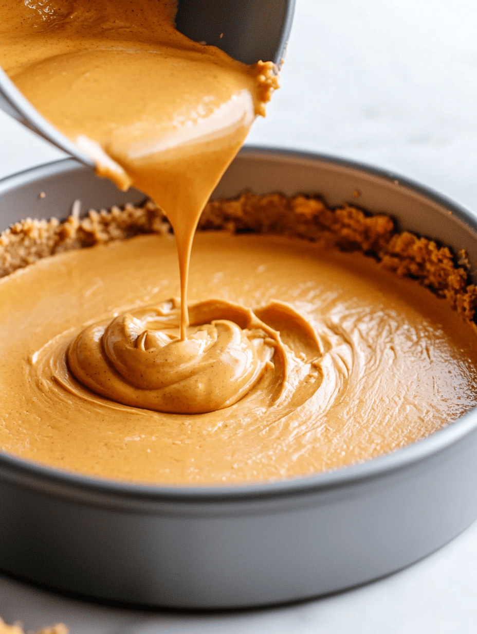 Pour the filling over the chilled crust and smooth the top with a spatula. Place the springform pan on a baking sheet to catch any drips, then bake for about 60 minutes or until the edges are set but the center still jiggles slightly when gently shaken.