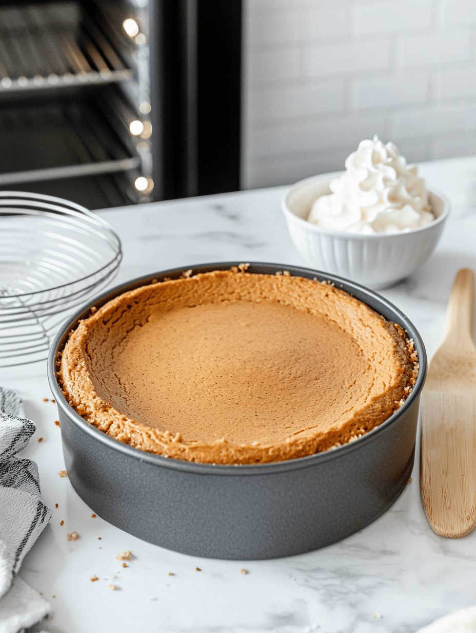 Turn off the oven and leave the cheesecake inside with the door slightly ajar for 30 minutes; this helps prevent cracking. Afterwards, remove it from the oven and cool completely at room temperature.