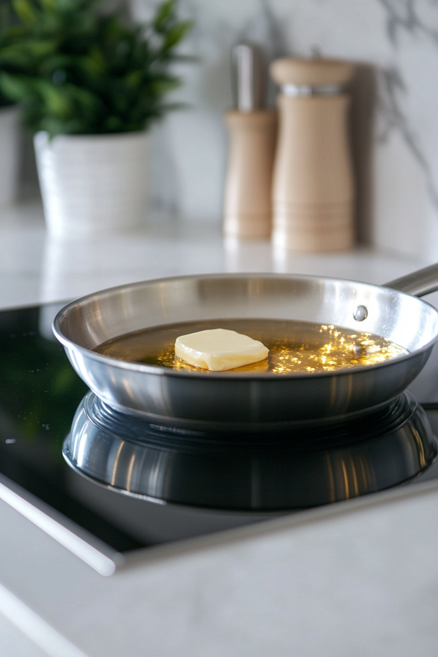 Melt 1 tablespoon of butter on the preheated skillet, spreading it to cover the surface.