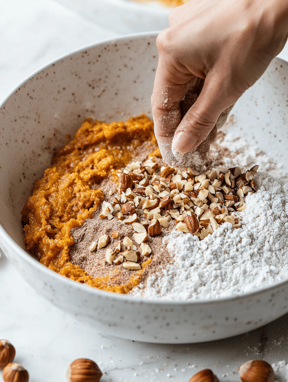 Stir in the toasted hazelnuts, distributing them evenly throughout the batter.