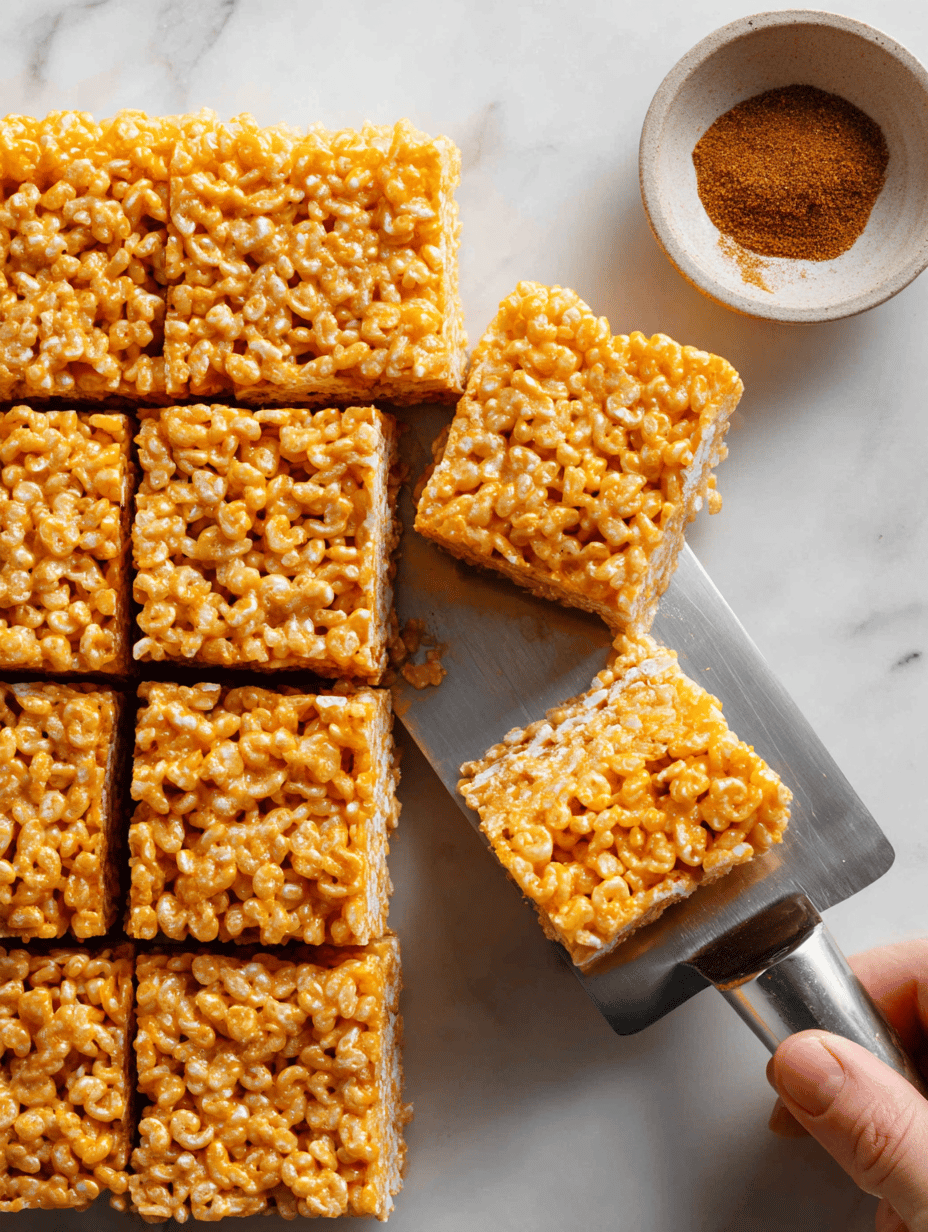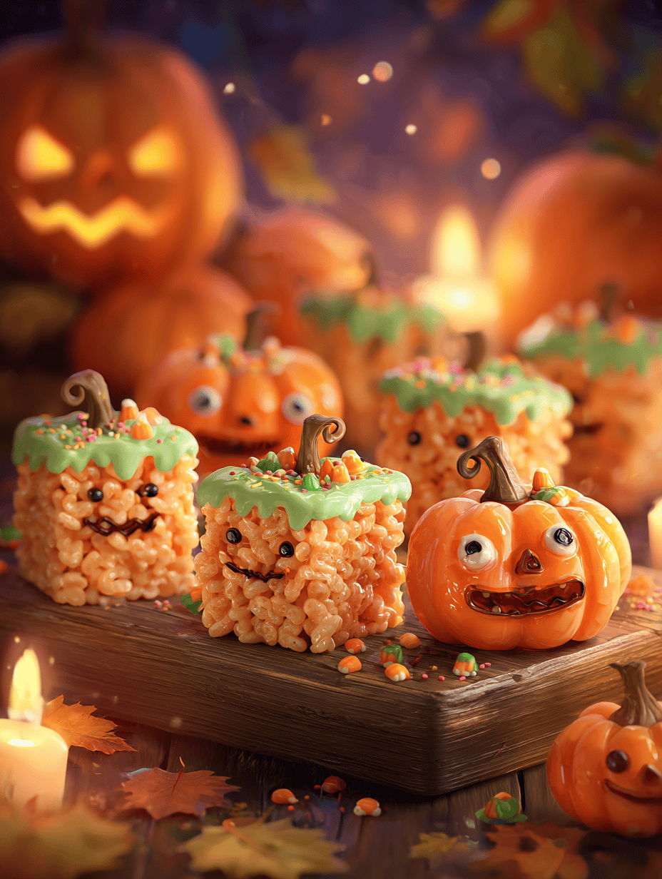 These festive pumpkin Rice Krispie treats combine gooey marshmallows, crispy cereal, and pumpkin puree to create a soft, chewy snack with a subtle seasonal flavor. The mixture is melted together and pressed into a pan to set, resulting in a vibrant orange, crunchy, yet tender treat perfect for Halloween or fall gatherings. Customizable with sprinkles or candies, they are a fun and forgiving no-bake dessert.