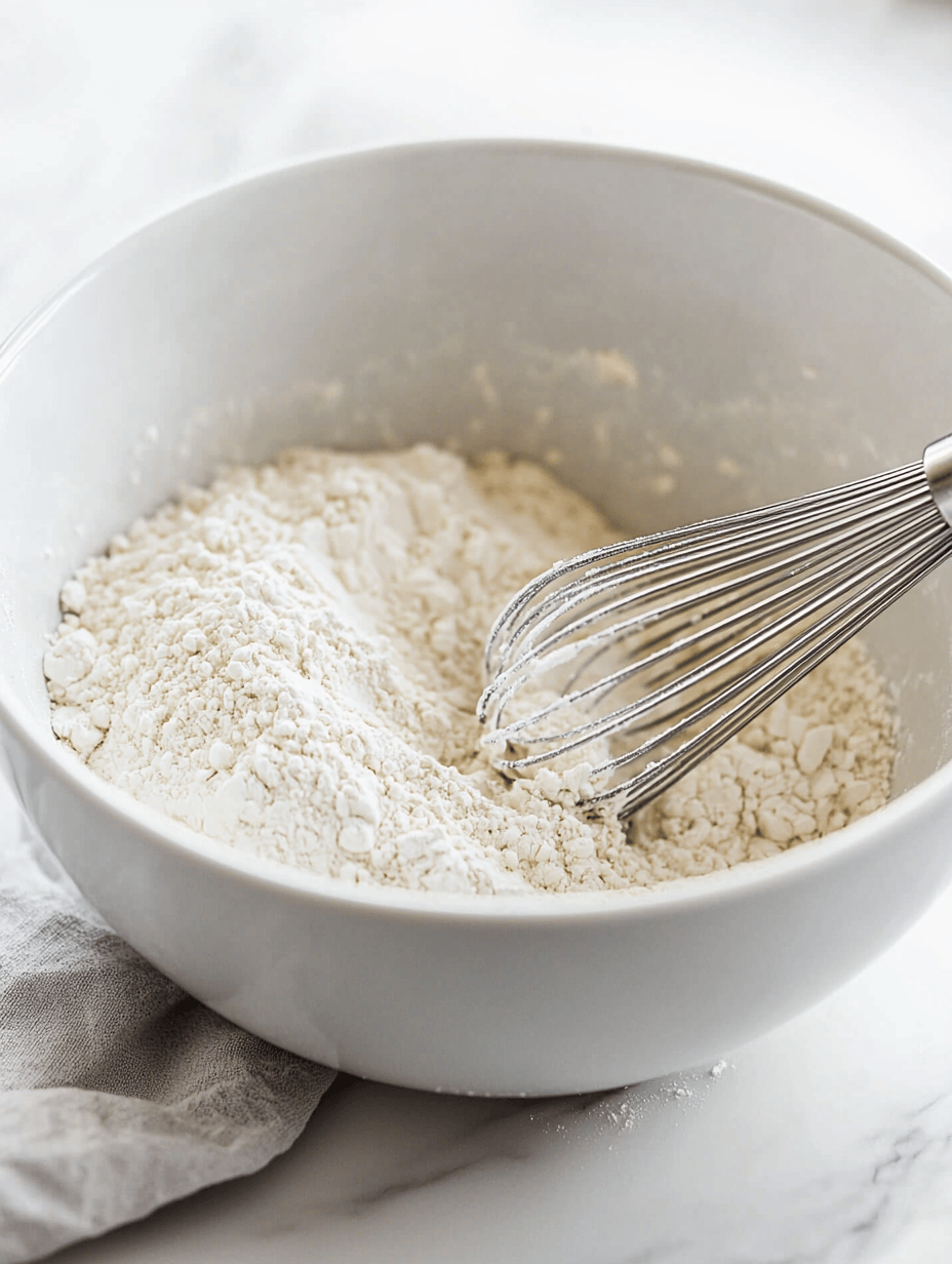 In a large mixing bowl, whisk together the sifted flour, sugar, baking powder, baking soda, cinnamon, nutmeg, ginger, and salt until well combined.