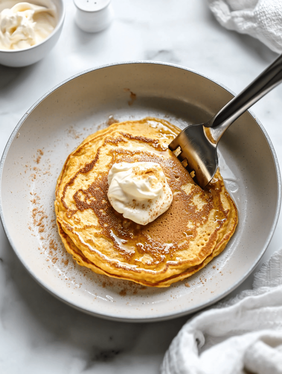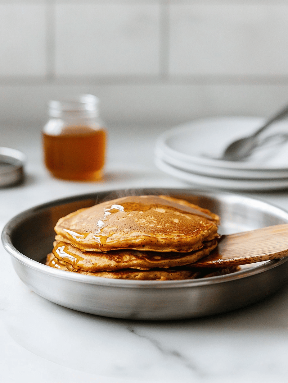 Serve the warm pancakes topped with a drizzle of maple syrup and optional toppings like apple slices or toasted walnuts for extra flavor and crunch.