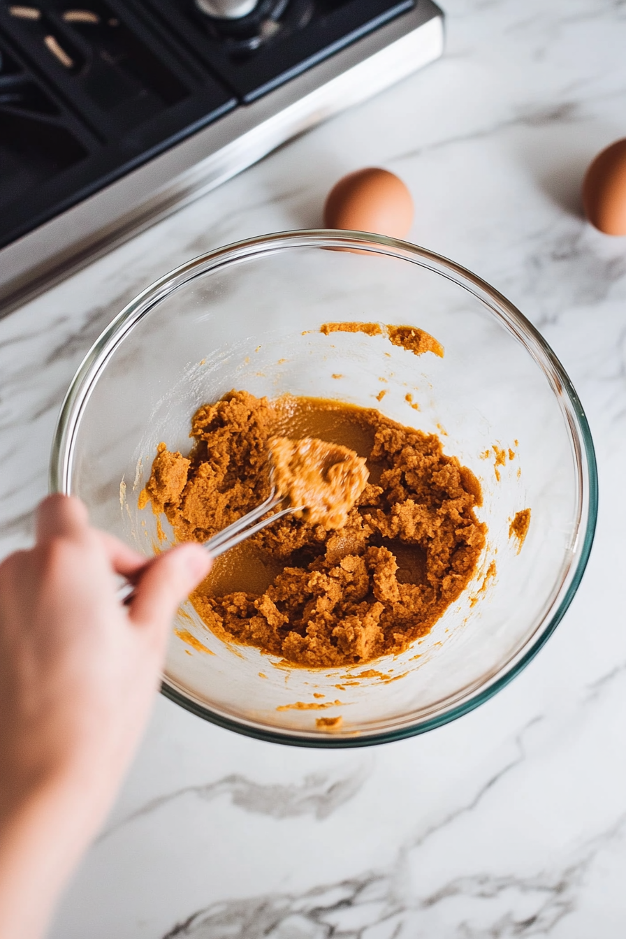 In a large bowl, beat the eggs, then mix in the milk, melted butter, pumpkin, and vanilla until smooth.