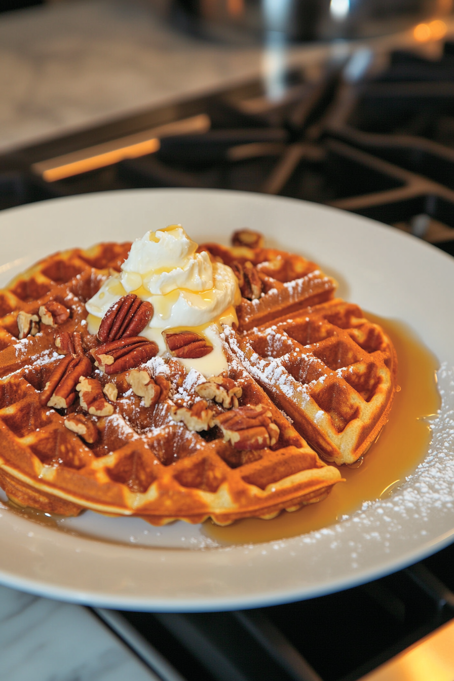 Cook until the waffles are crisp and golden brown. Serve with your favorite toppings and enjoy!
