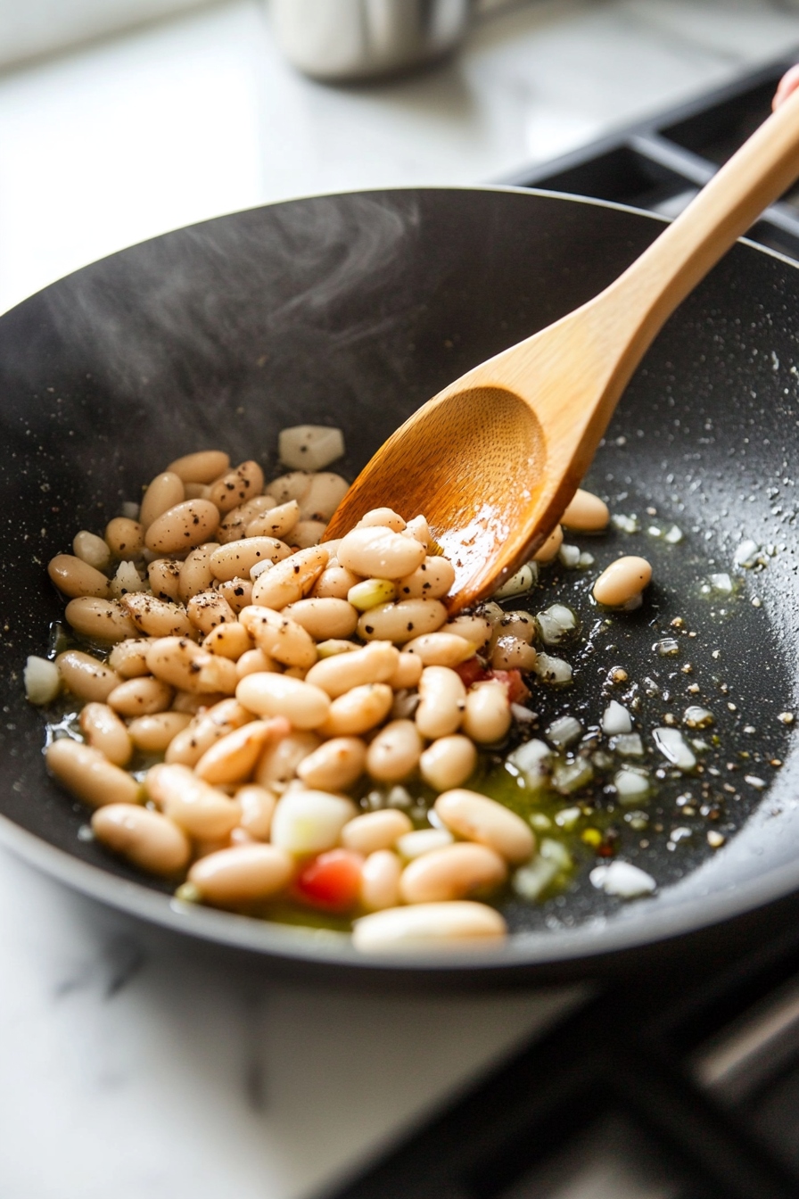Combine Ingredients: Remove from heat, then add beans, reserved lemon juice, and salt to the saucepan. Season with black pepper and toss to combine. Let sit for at least 15 minutes.