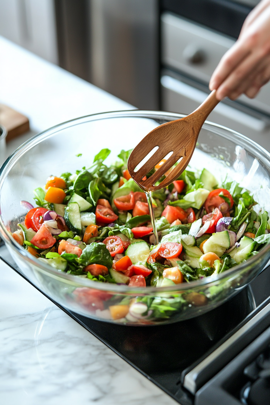 Drizzle and Toss: Drizzle the infused oil over the salad and toss to coat all ingredients.