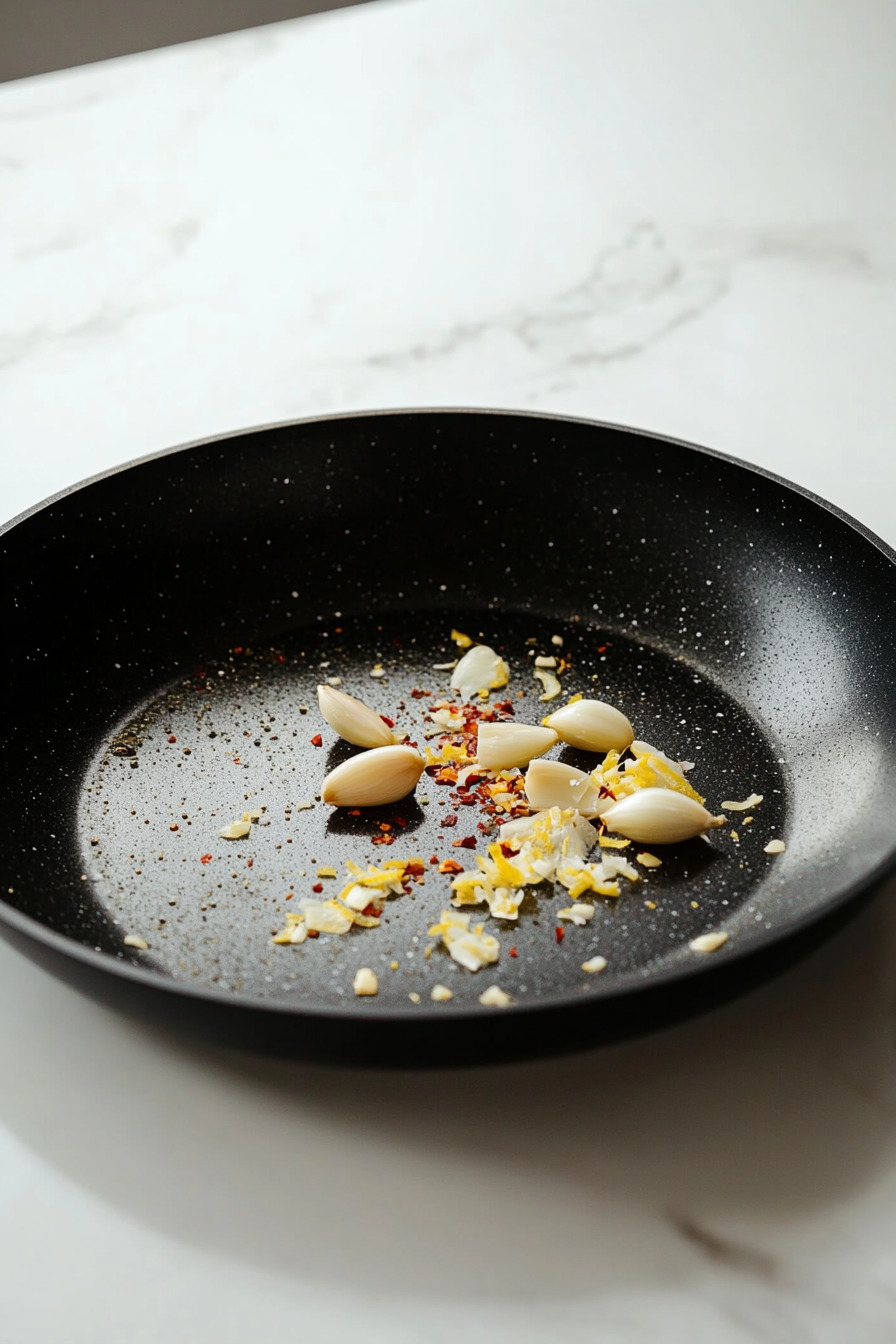 Infuse Oil: In a medium saucepan, heat lemon zest, garlic, red pepper flakes, and oil over medium-low heat. Stir to break apart the garlic, reducing heat if necessary, and cook for 10β12 minutes until fragrant.
