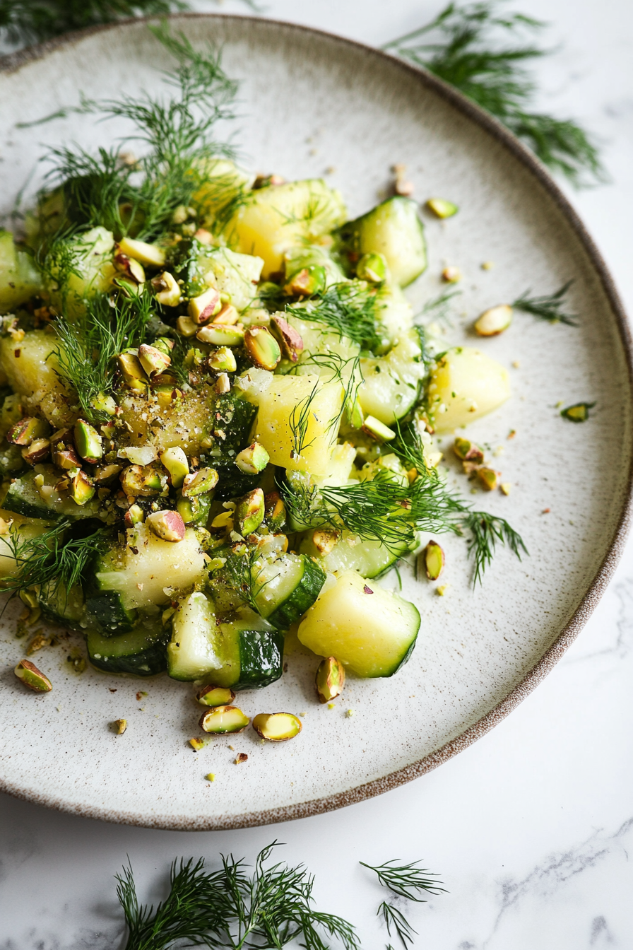 Serve: Transfer the salad to a platter and top with chopped pistachios and the remaining dill. Enjoy!
