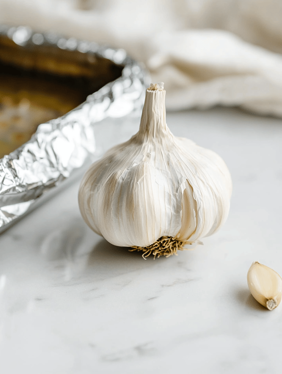 Preheat your oven to 400°F (200°C). Place the whole garlic head on a baking sheet, drizzle with one tablespoon of olive oil, and wrap loosely in foil. Roast for about 30-35 minutes until soft and fragrant, filling the kitchen with a warm aroma.
