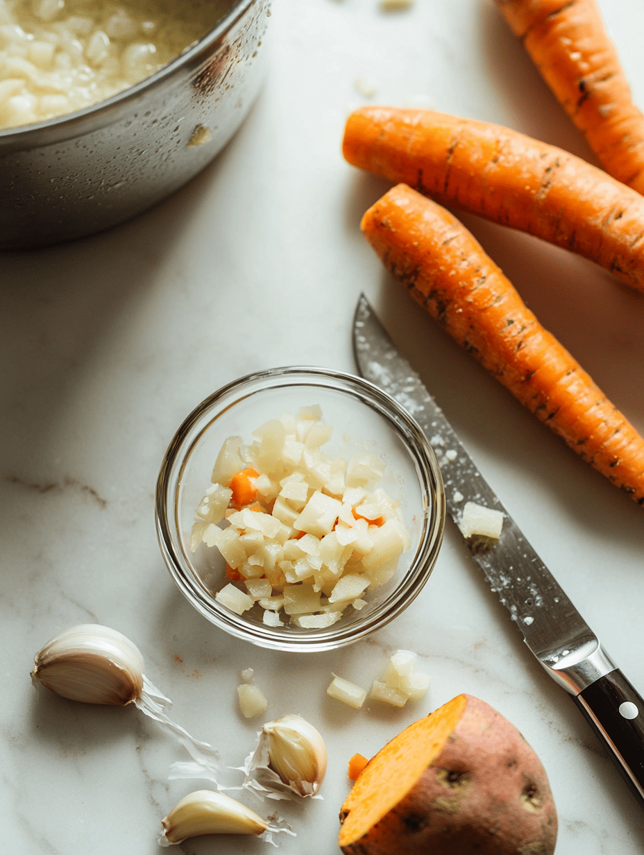 Preheat your oven to 400°F (200°C). Toss the sweet potato cubes and sliced carrots with olive oil, cumin, and a pinch of salt and pepper. Spread them evenly on a baking sheet and roast for about 25-30 minutes, until they are caramelized and tender, and fragrant with toasty spices.