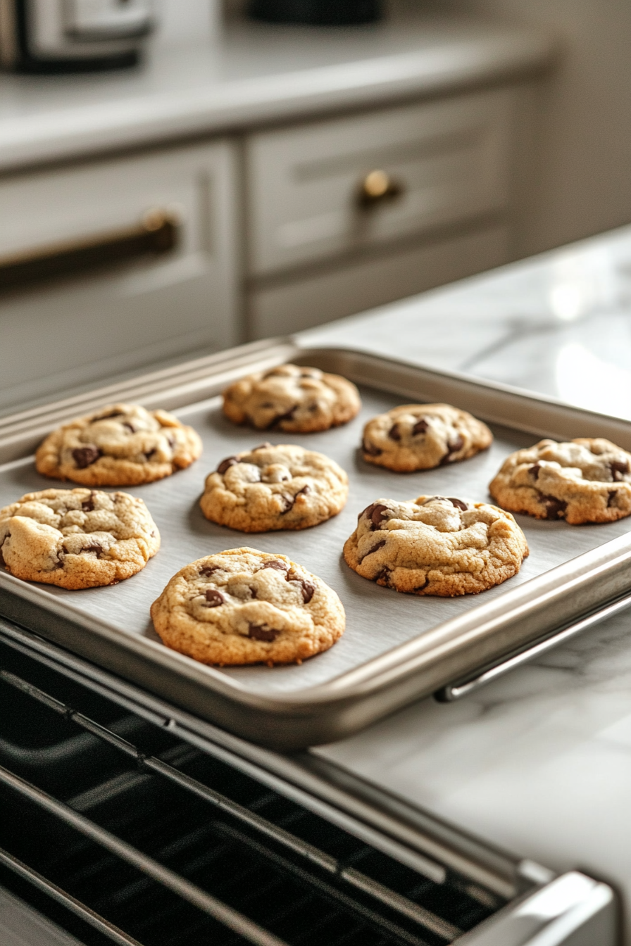 Place dough portions on a baking sheet and bake at 350°F for 13-15 minutes for large cookies, or 9-11 minutes for smaller ones, until edges are golden brown.