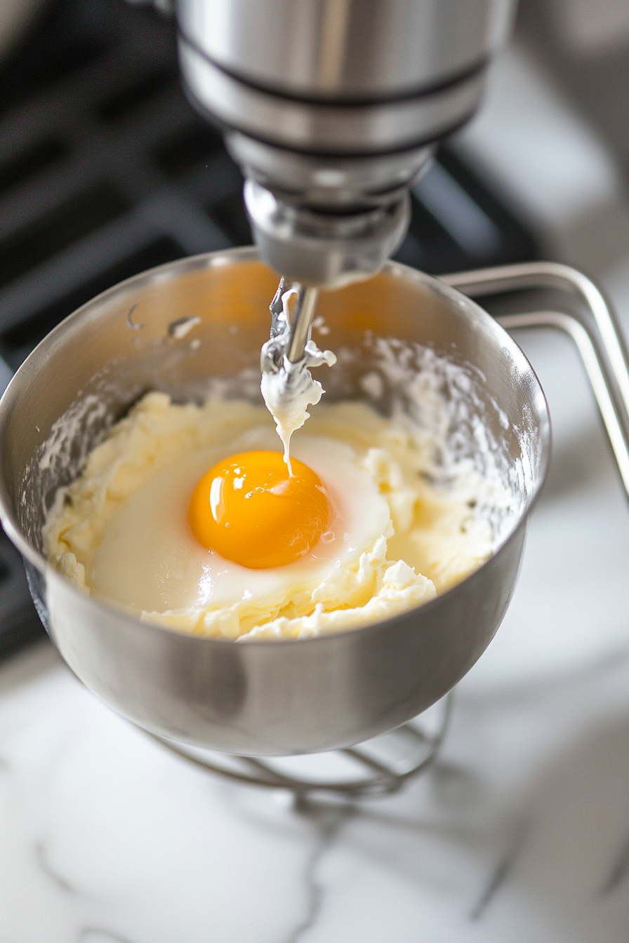 Scrape the sides of the bowl, then mix in the egg and vanilla until fully combined.