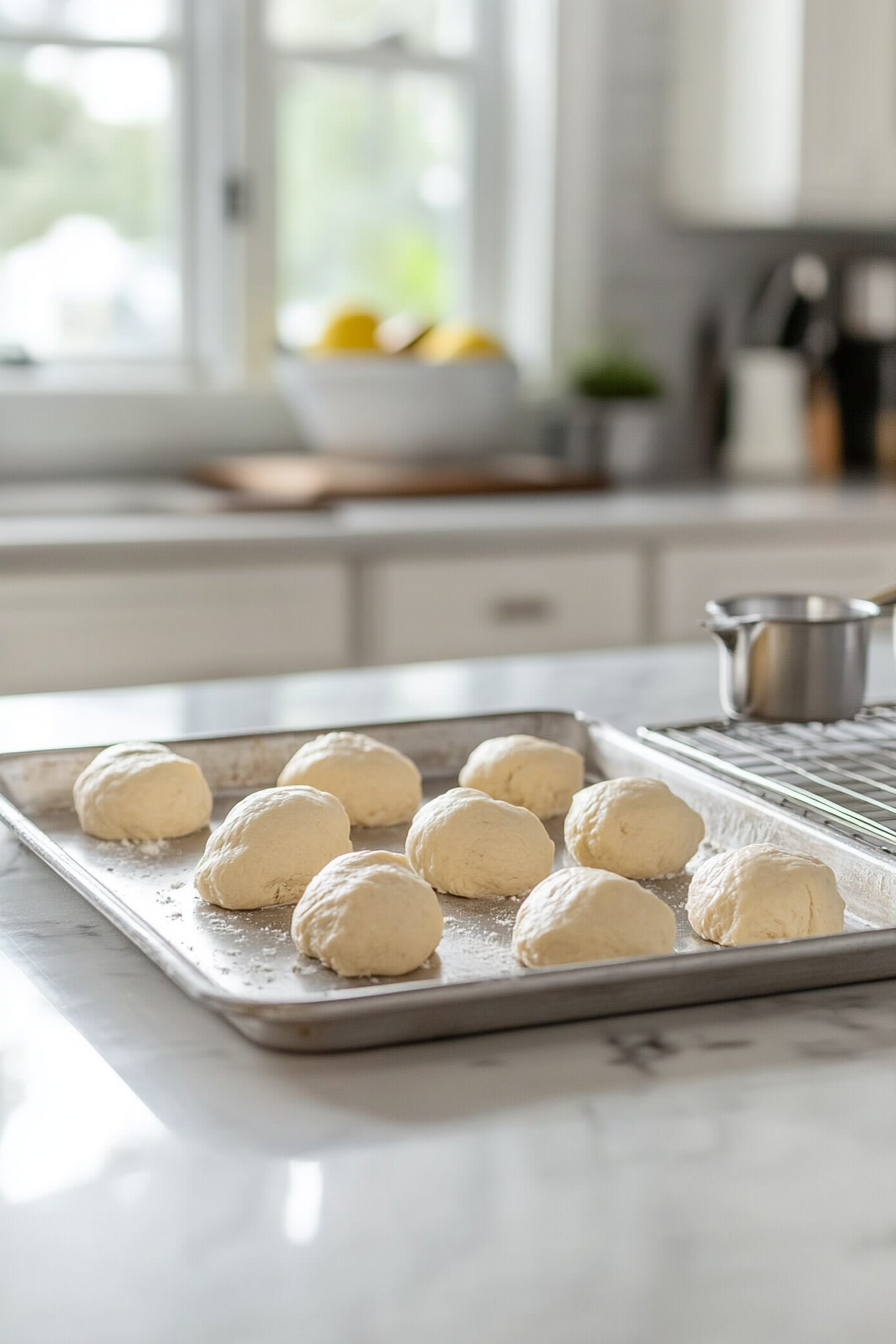 Roll dough into a ball, then break it in half and press the two halves back together, leaving jagged edges for texture (optional).