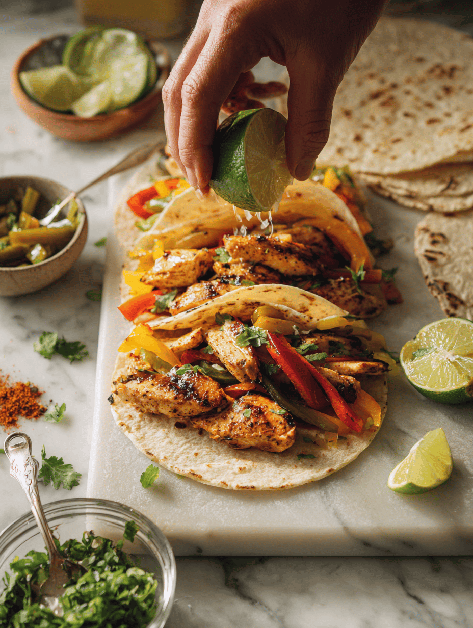 Finish by squeezing fresh lime over the tacos and garnishing with extra cilantro if desired. Serve immediately while warm and juicy.