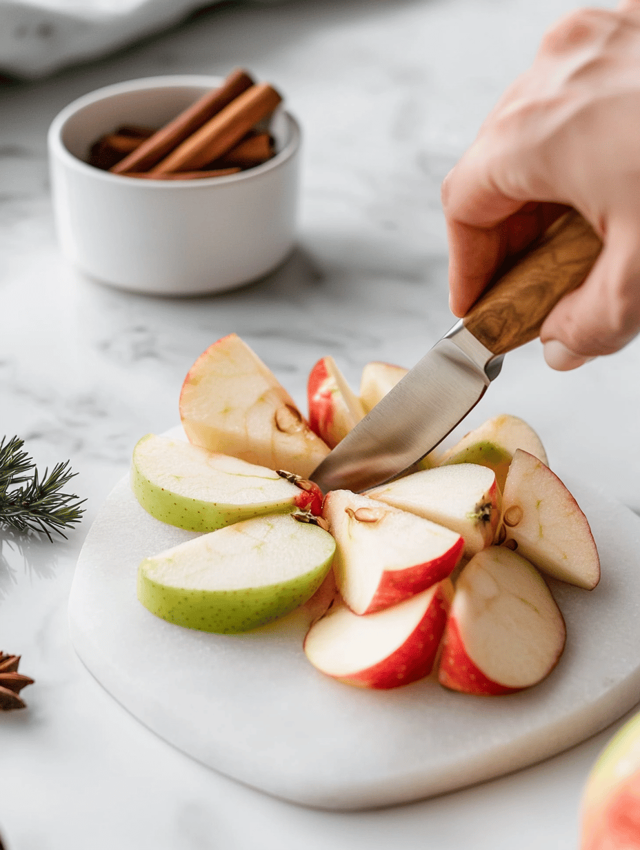 Core and slice the apples into quarters, leaving the skins on for added aroma and texture.