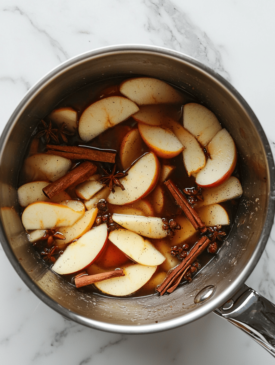 Pour the aromatic apple mixture into a bowl or leave it in the pot for continued simmering to maintain the scent.
