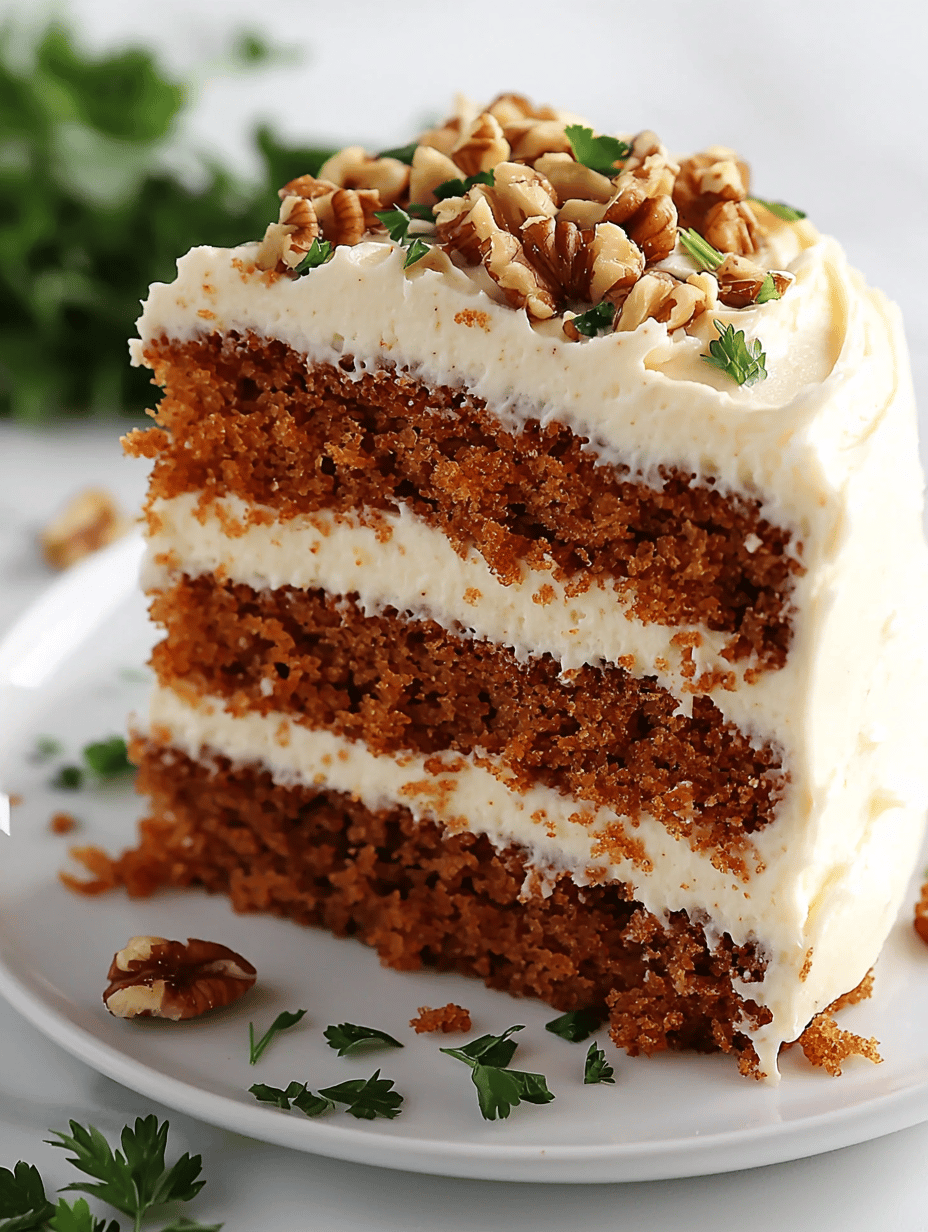 Once cooled, slice and serve your moist, spiced carrot cake. Enjoy the tender crumb and warm aroma with your favorite beverage.