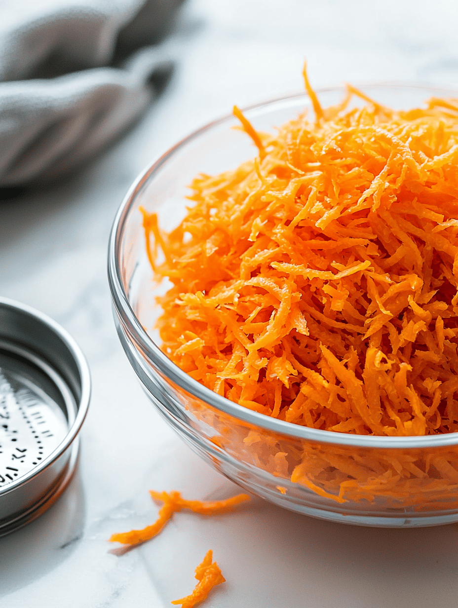 Grate the carrots finely and measure out about 2 cups. Set aside.