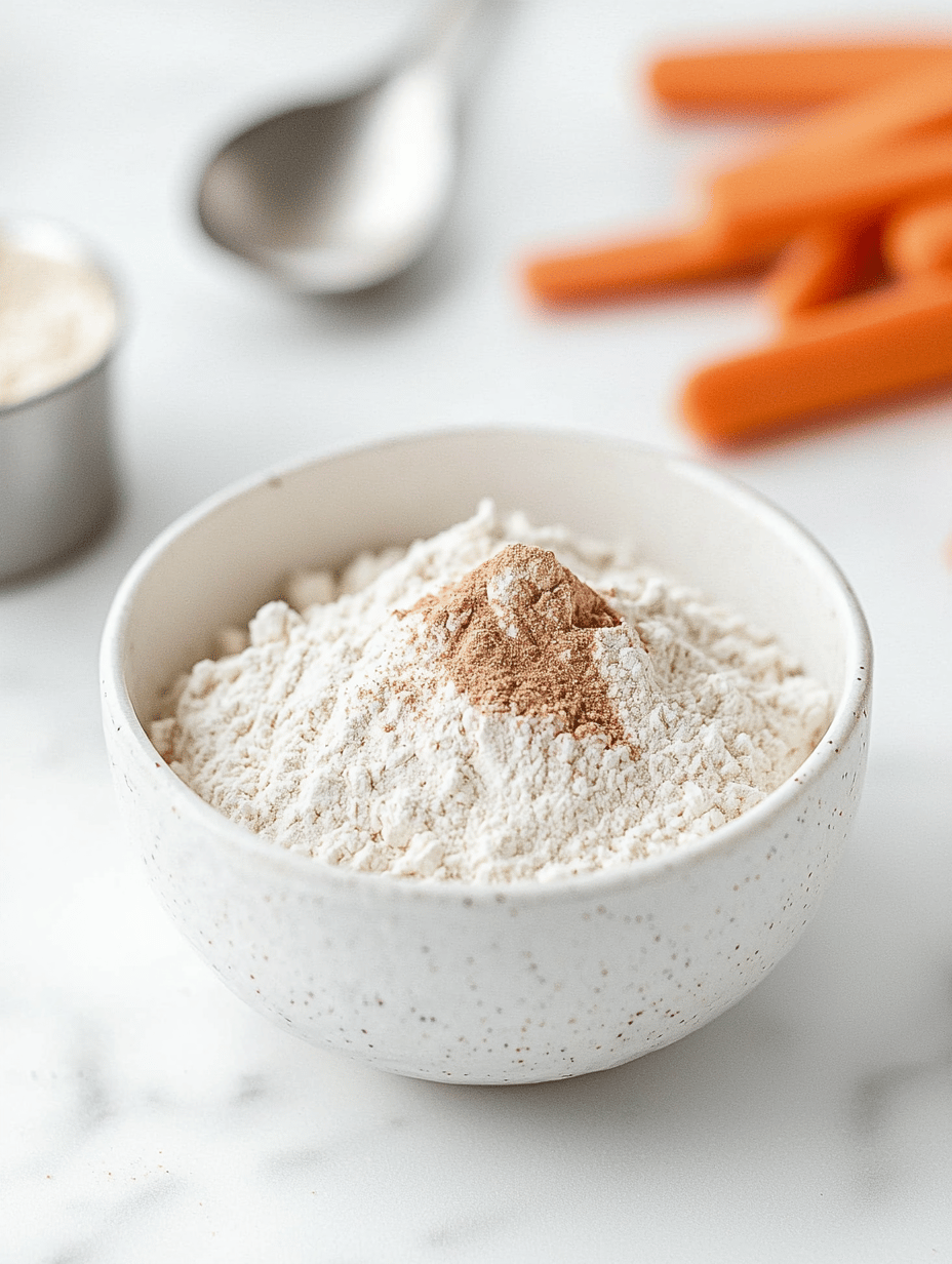 In a separate small bowl, whisk together the flour, cinnamon, baking powder, and baking soda. Sift if desired for a smoother batter.