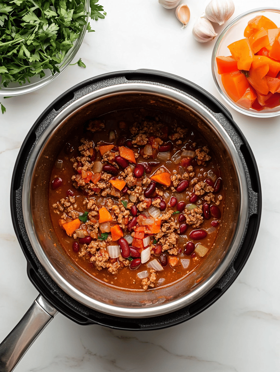 For a vegetarian version, omit the meat and add extra beans or roasted vegetables. To spice it up, include a dash of cayenne or hot sauce. The chili tastes even better the next day, as flavors meld.