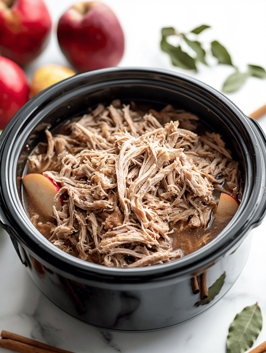 Cover and cook on low for 6 hours, or until the pork is tender and can be easily shredded with a fork. The house will fill with a rich, spicy apple aroma.