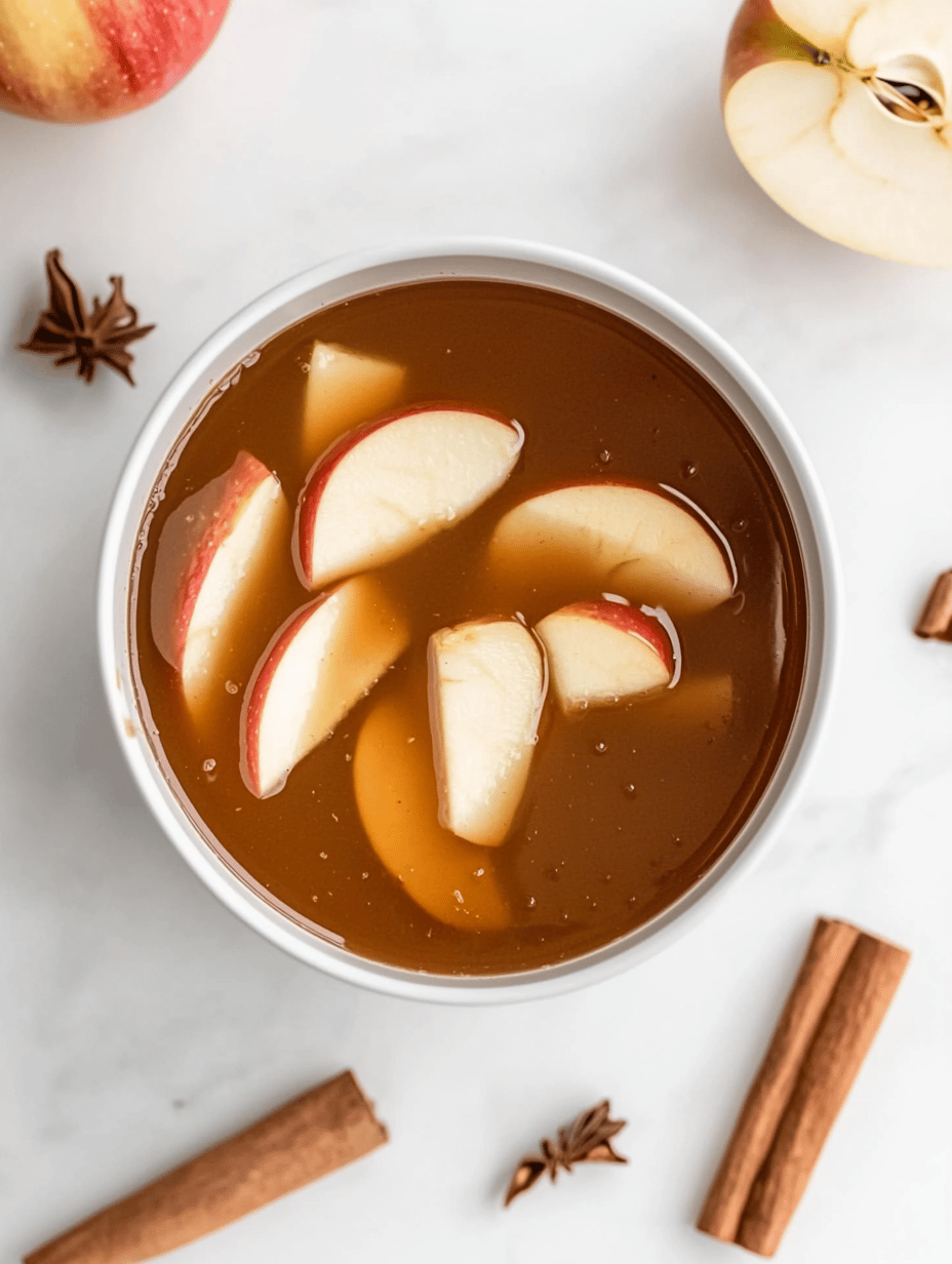 Once done, carefully transfer the pork to a serving plate and let it rest for a few minutes. Meanwhile, skim any excess fat from the cider in the slow cooker and turn the setting to high.