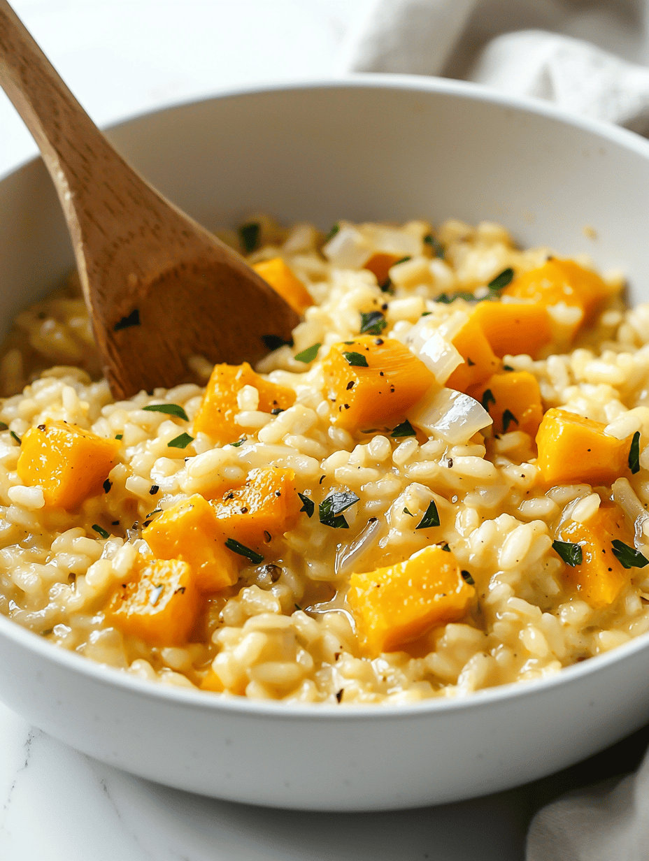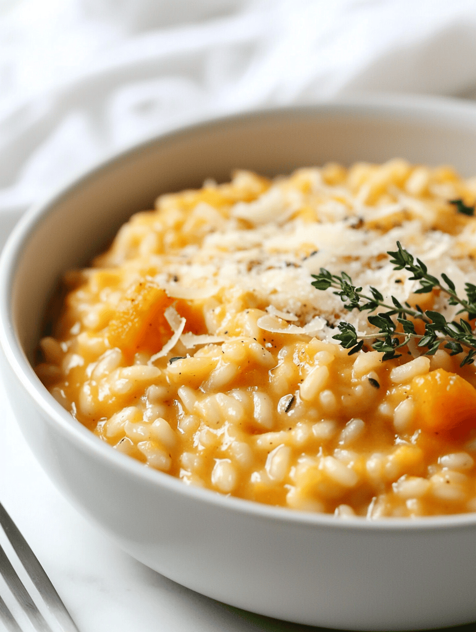 Serve the pumpkin risotto hot, garnished with a sprinkle of extra Parmesan or fresh herbs for a cozy, fall-inspired meal.