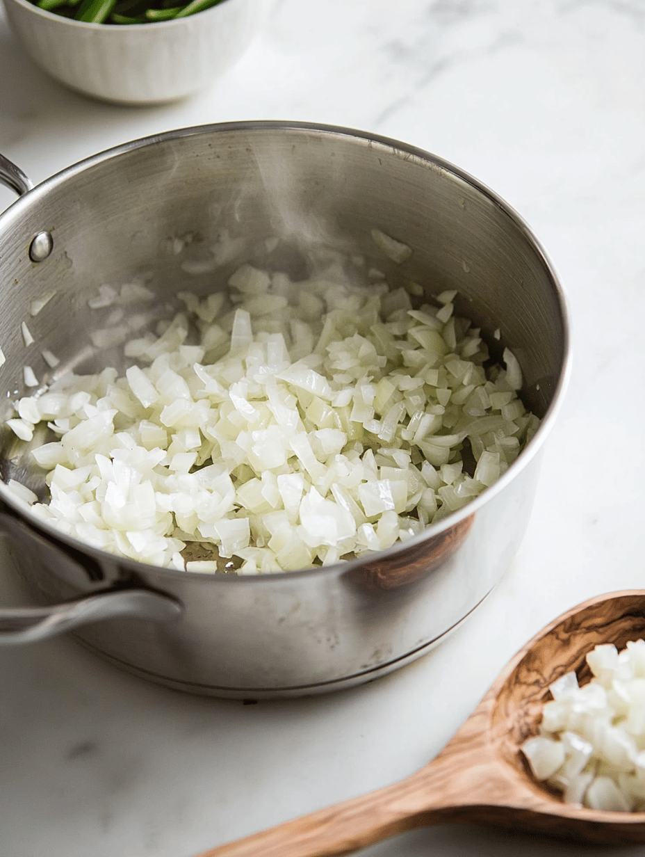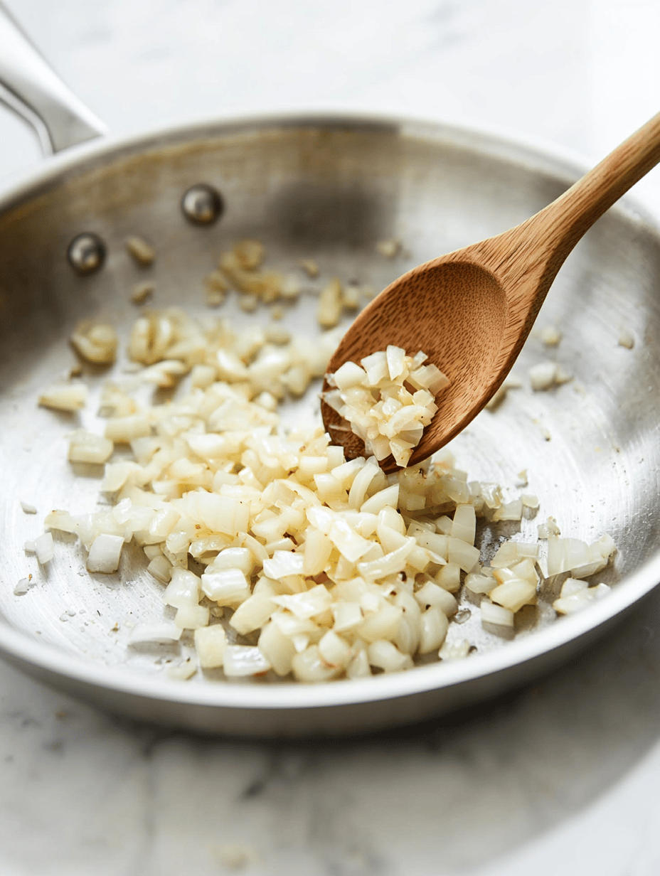 Add the minced garlic to the onions and cook for another minute, stirring constantly; it should become fragrant and slightly golden.