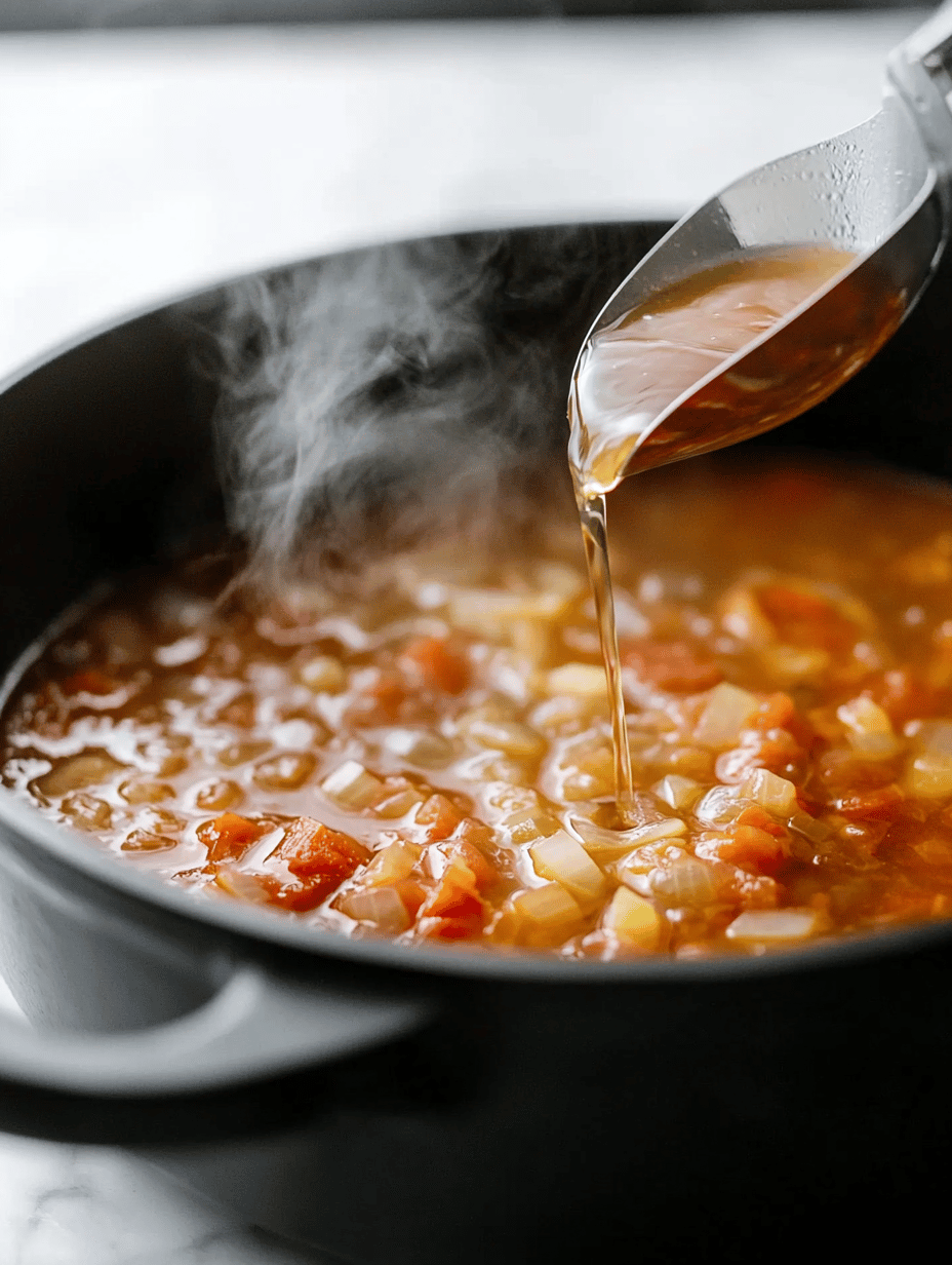 Pour in the broth and bring the mixture to a gentle simmer. Cover with a lid and cook on low heat for 30 minutes, stirring occasionally and watching for bubbling.