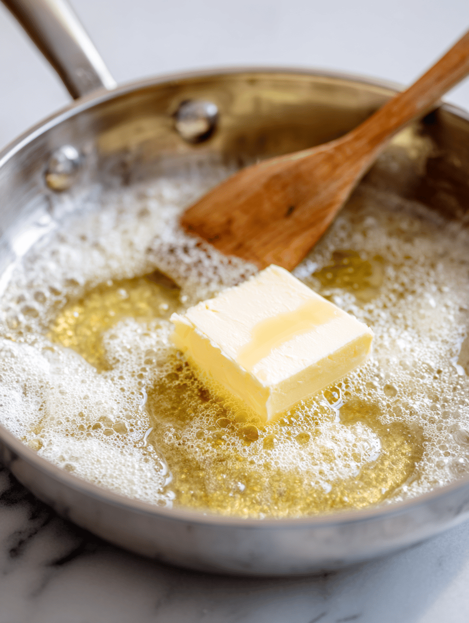 In your saucepan, melt the butter over medium heat until it smells nutty and turns a light golden brown, about 2-3 minutes.
