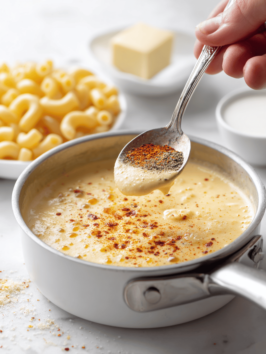 Season the sauce with salt, pepper, and paprika, tasting and adjusting as needed for flavor.