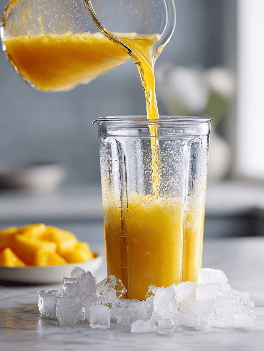 Briefly pulse the blender again to incorporate the champagne evenly, adjusting the texture if needed—more ice for thicker consistency or more citrus for brightness.