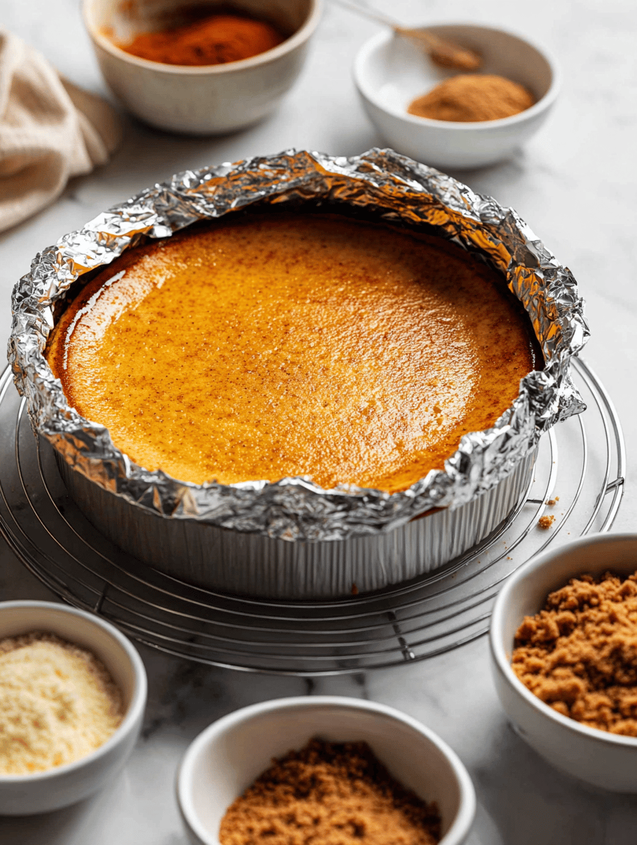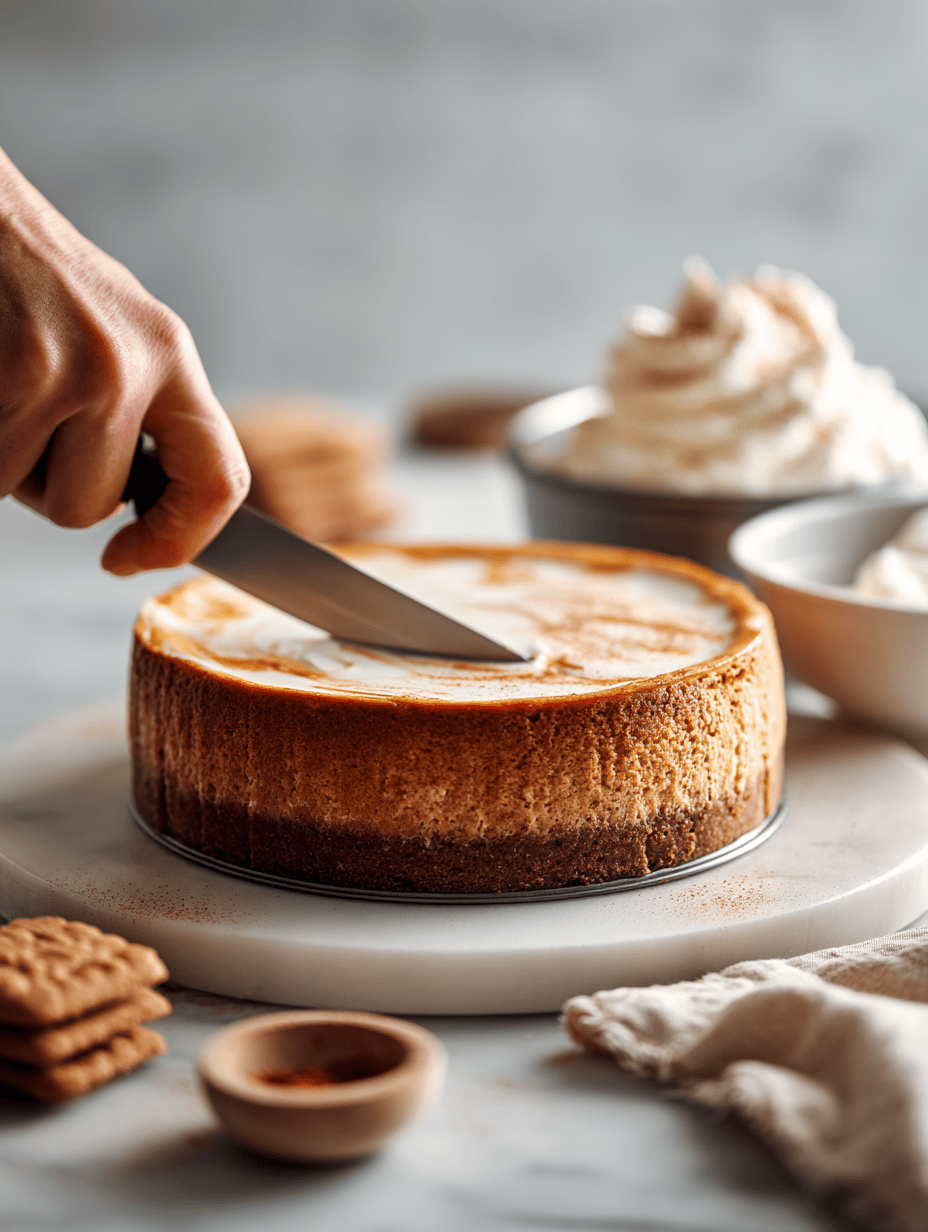 Before serving, run a knife around the edge, release the springform, and garnish with whipped cream or a sprinkle of cinnamon. Slice gently and enjoy the creamy, spiced indulgence.