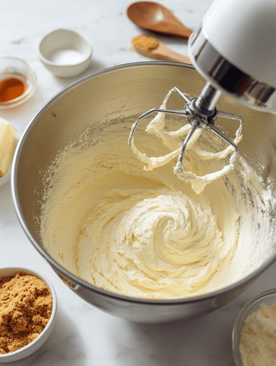 In a large bowl, beat softened cream cheese with granulated sugar until smooth and fluffy, about 3 minutes; you’ll hear a gentle whir and see the mixture lighten in color.