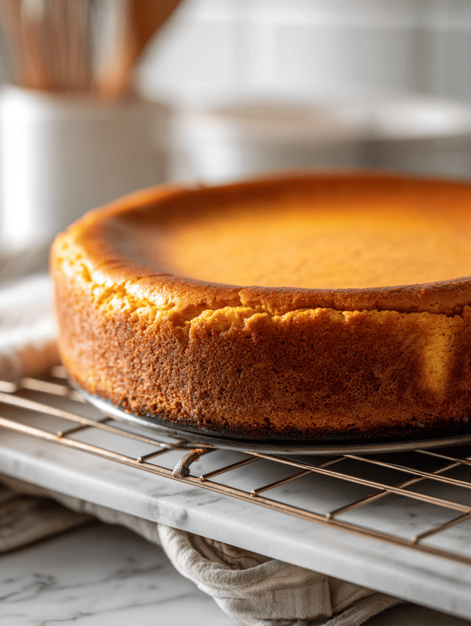 Once baked, turn off the oven and leave the cheesecake inside with the door slightly ajar for 30 minutes to cool gradually, which helps prevent cracks.
