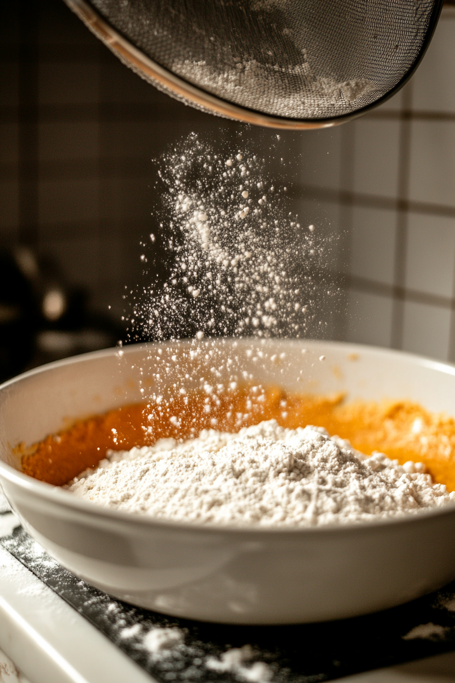 Combine Dry Ingredients: Sift flour, baking powder, baking soda, salt, and chai spices into the wet mixture; mix just until combined.