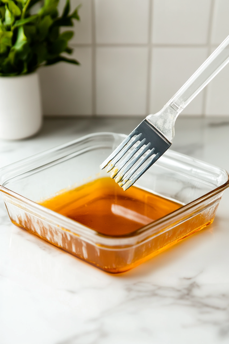 Grease a baking dish (around 8x8 inches or a glass pie dish works well).