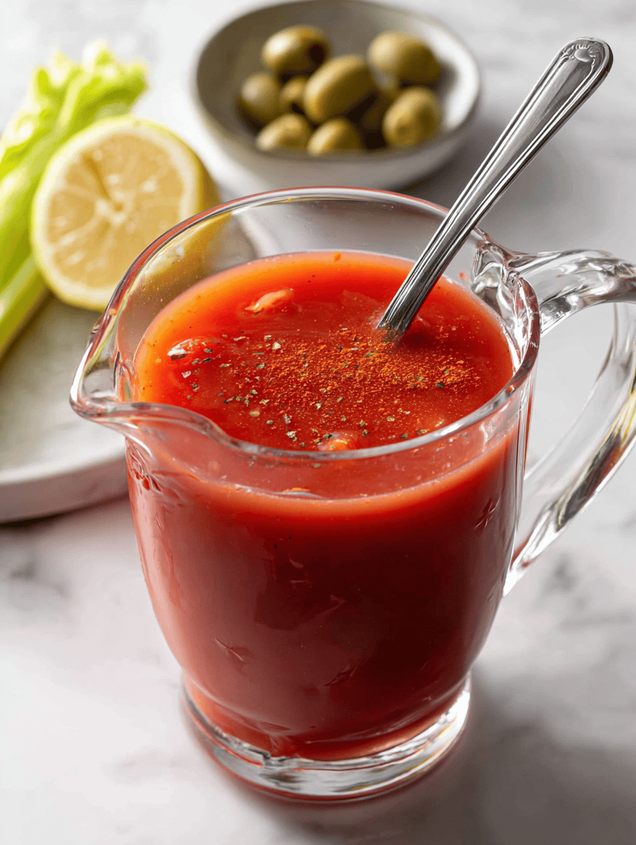 This vibrant, deep red cocktail is a spooky twist on the classic Bloody Mary, featuring a smoky paprika kick and chaotic garnishes that resemble severed fingers and creepy eyeballs. It’s made by shaking together tomato juice, vodka, and bold spices until frosty and well-blended, then served chilled with grotesque-themed decorations. The final drink has a bright, spicy, smoky flavor with a thick, glossy appearance that’s both visually striking and deliciously savory.