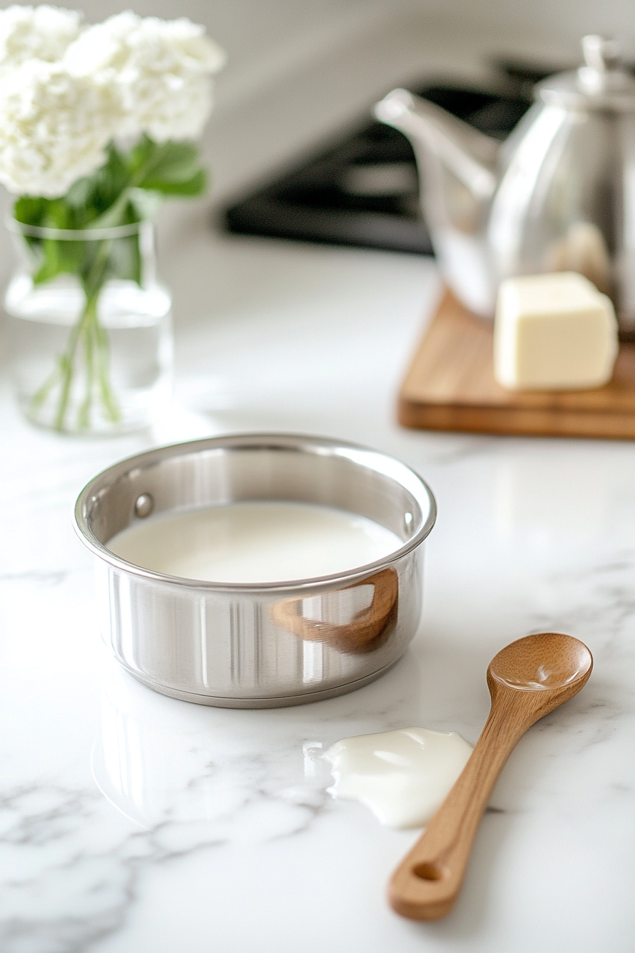 Heat milk in a small saucepan until warm, then mix in butter until melted. Let it cool to lukewarm.