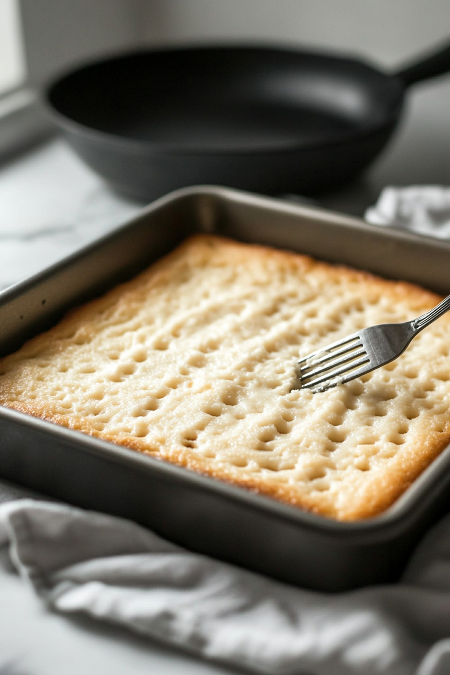 Use a fork to poke holes all over the cake, about ½ inch apart.