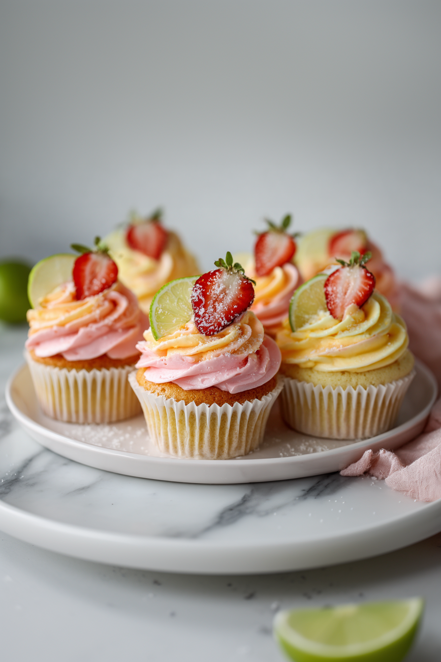 Decorate with sugared lime wedges and halved strawberries before serving.