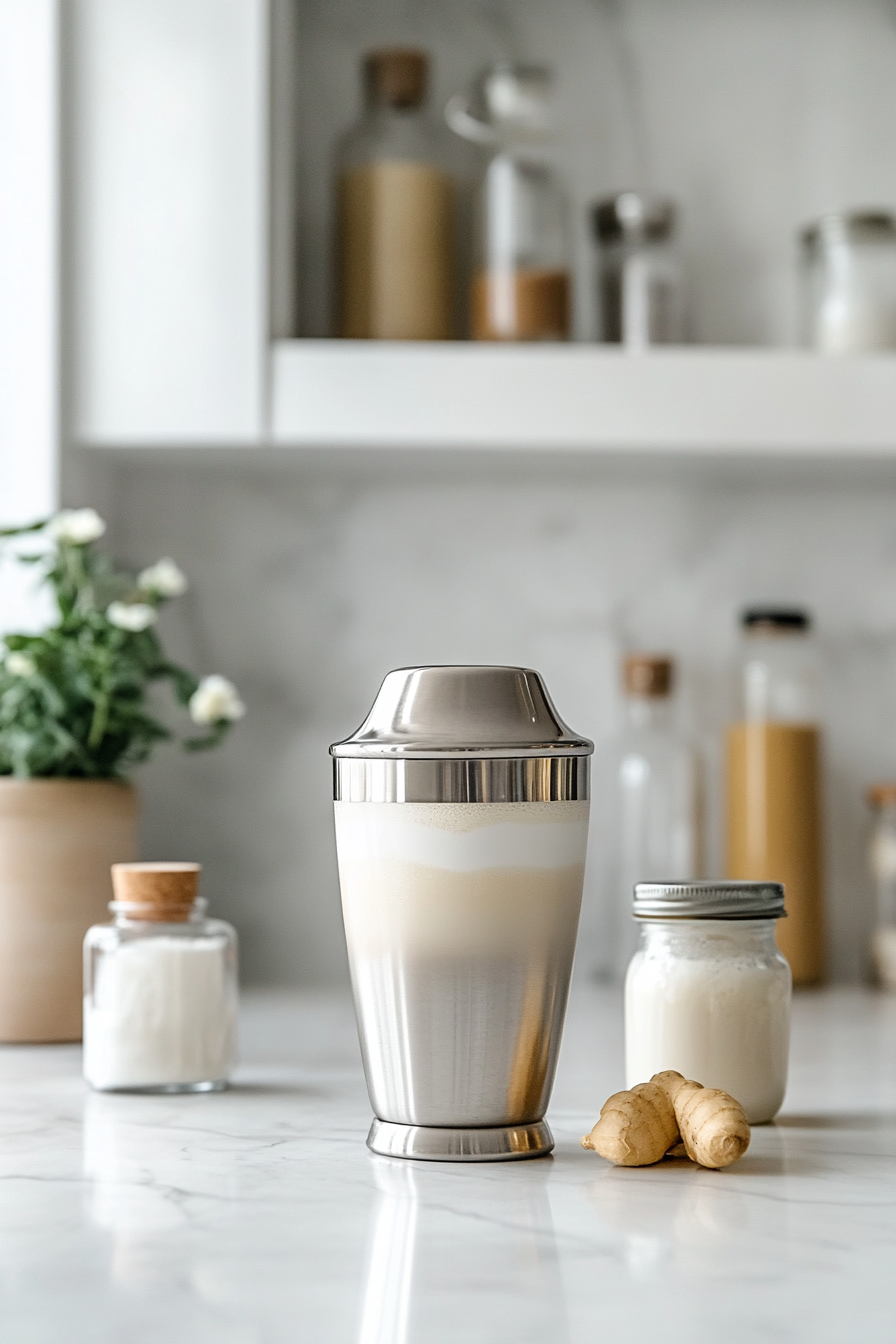 Shake vigorously for about 20 seconds until the mixture is frosty, well combined, and chilled.