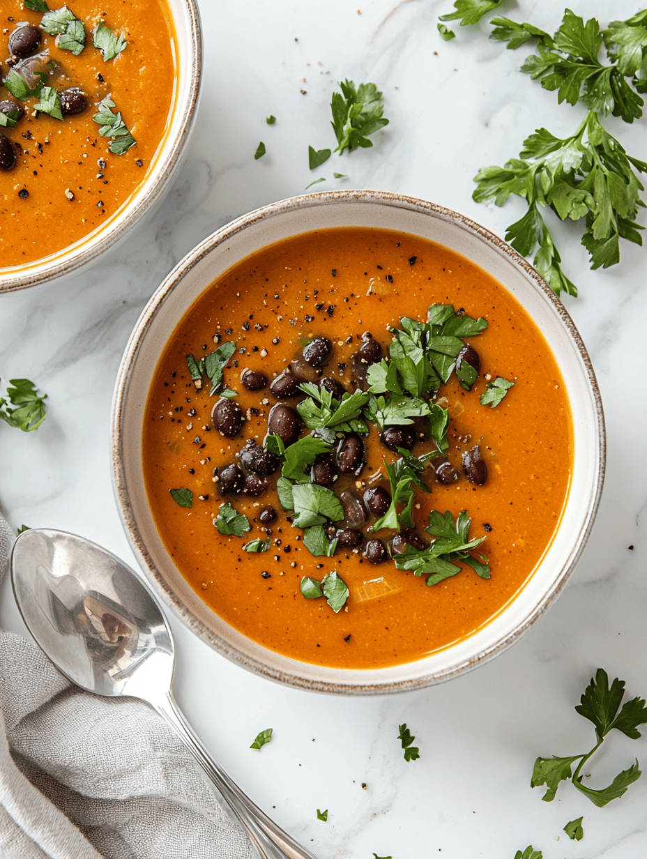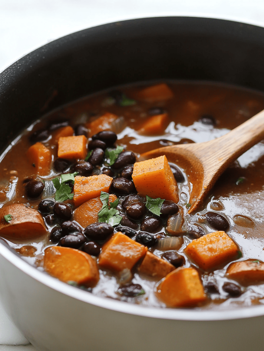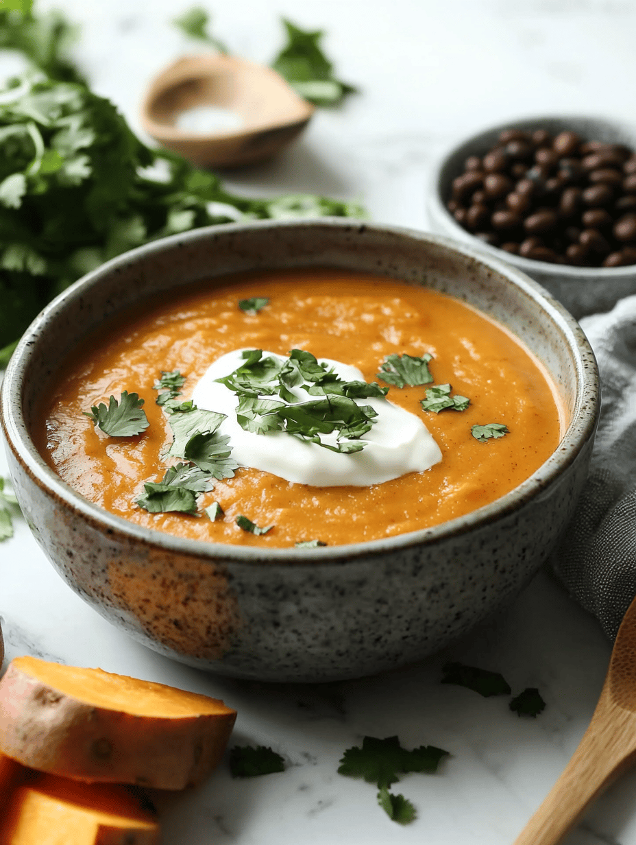 Enjoy your creamy, vibrant bowl of sweet potato and black bean soup—the perfect hearty yet fresh dish for any cozy night.