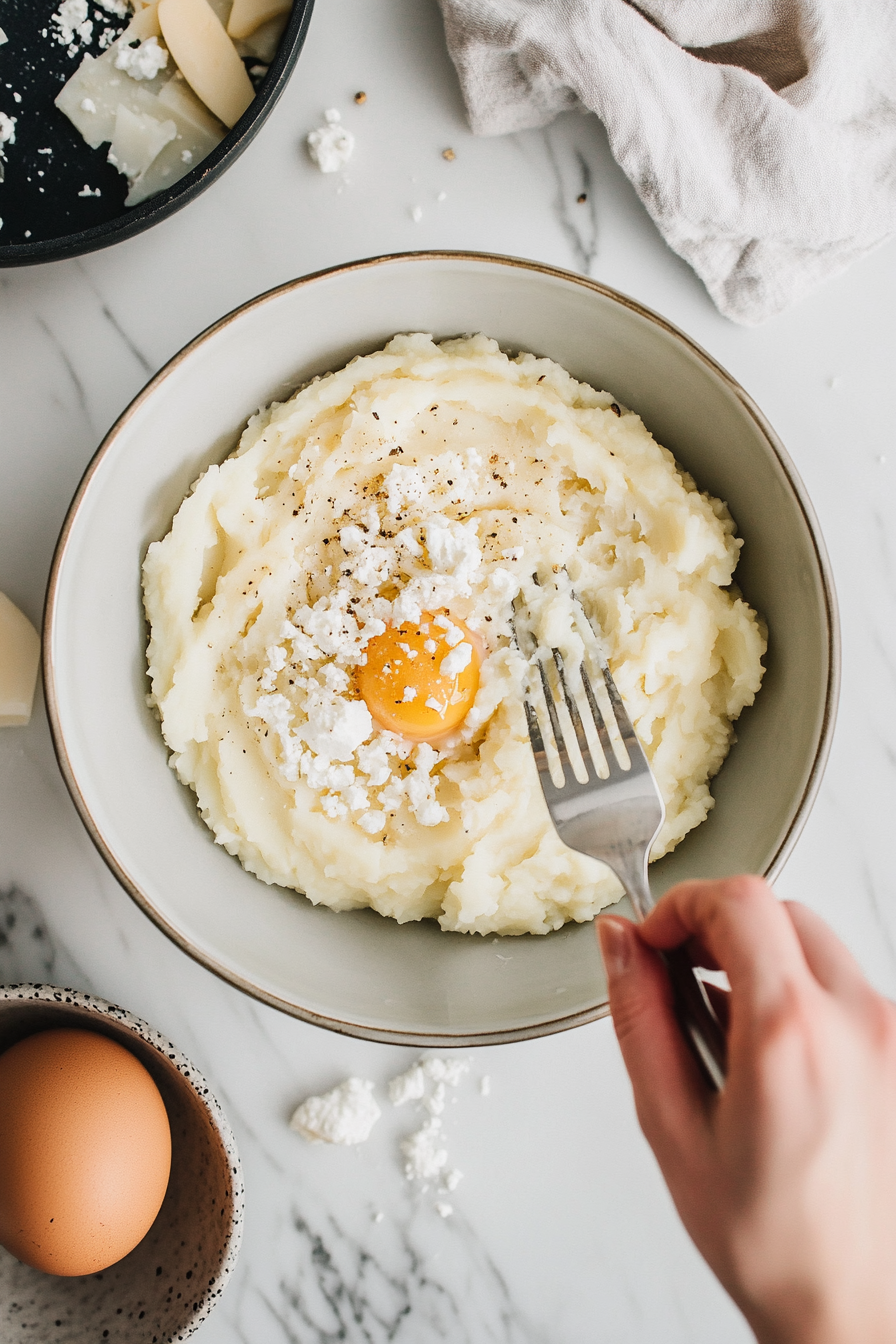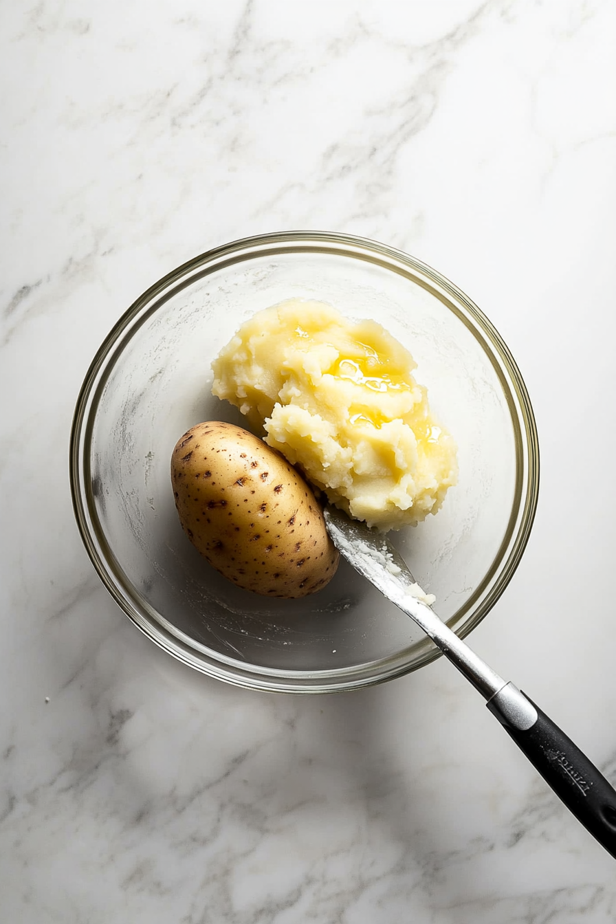 Bake the Potato: Preheat the oven to 400°F, scrub the potato, rub with olive oil and salt, and bake for 60-70 minutes until soft inside. Let it cool, peel, and mash.